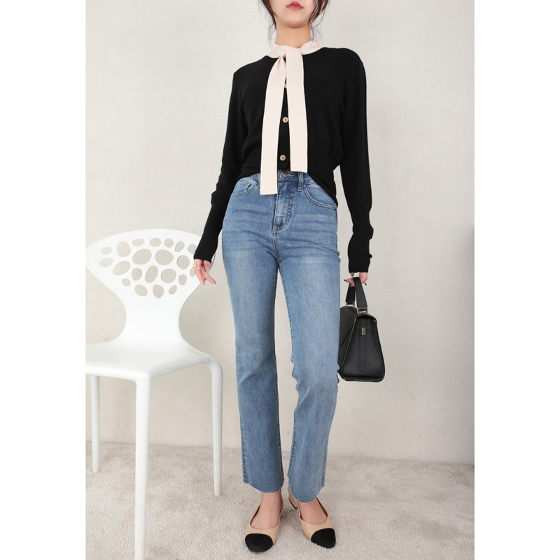 Ma's Jiamin Early Autumn Fine Spinning Wool Collision with knitted blouse wool sweater