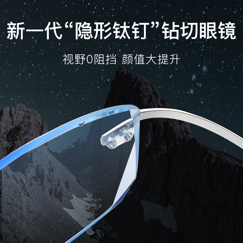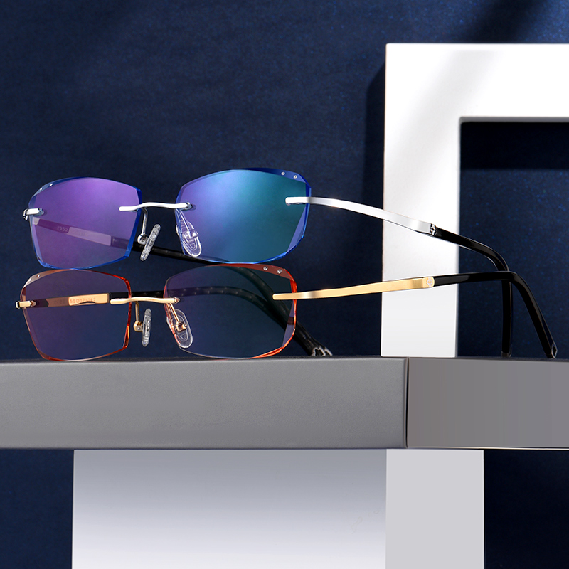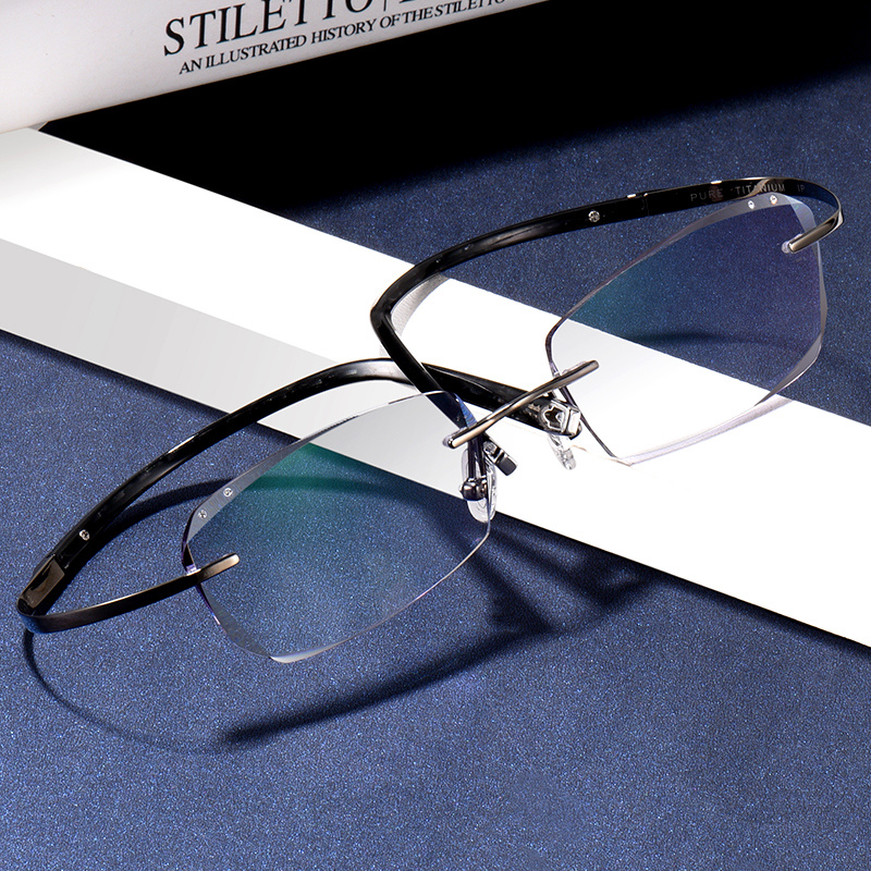 Ultra-light pure titanium myopia glasses male rimless glasses frame discoloration myopia glasses female astigmatism big face glasses frame flat light