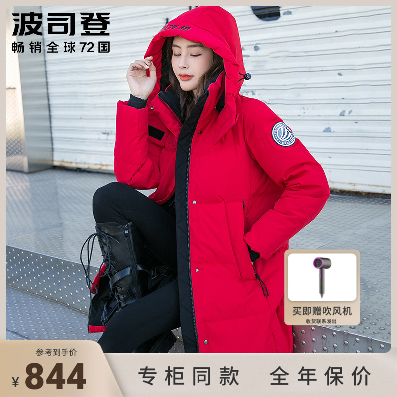 Bosideng down jacket women's mid-length version 2022 new winter women's off-season red detachable hood coat
