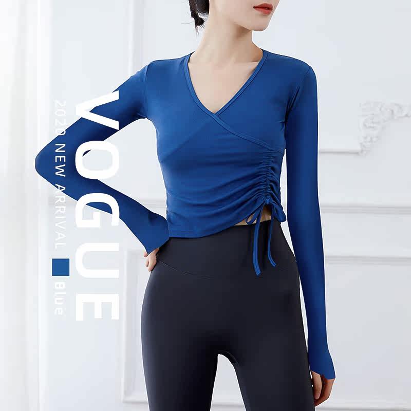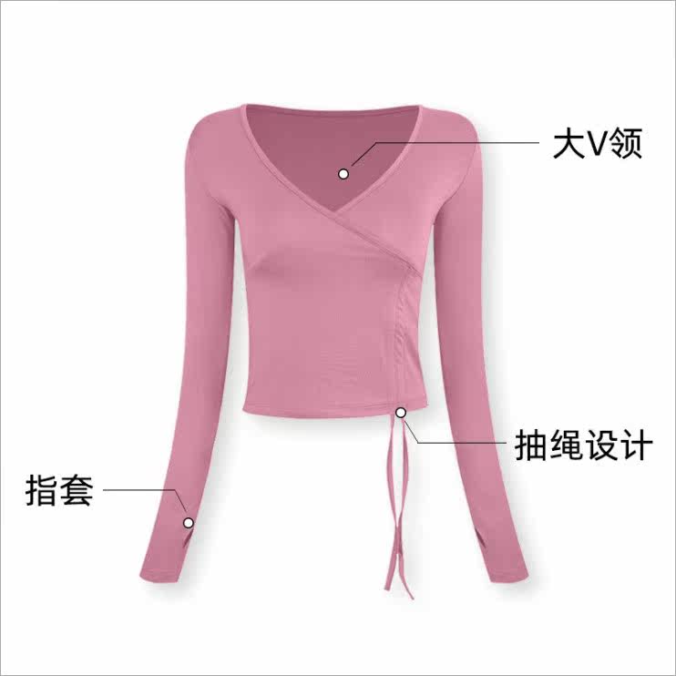 Rope sexy sports topper female red running fitness long sleeve fitness gym training speed dry yoga suit