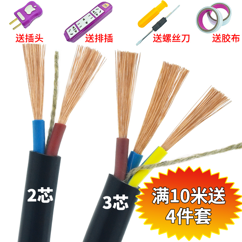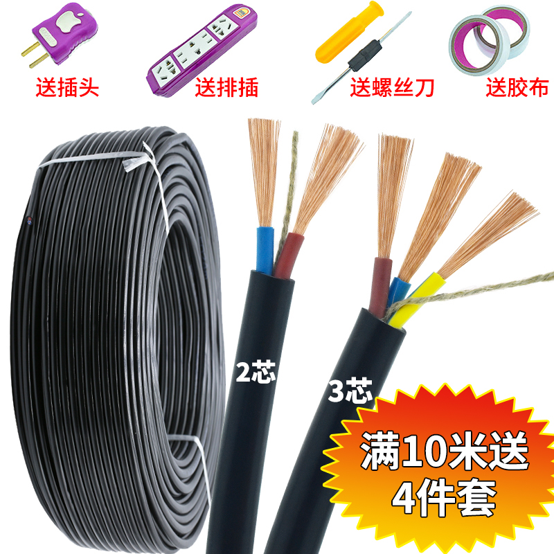 Wire and cable Household two-core three-core sheathed wire 2-core 3-core 1 1 5 2 5 4 square power cord and cable