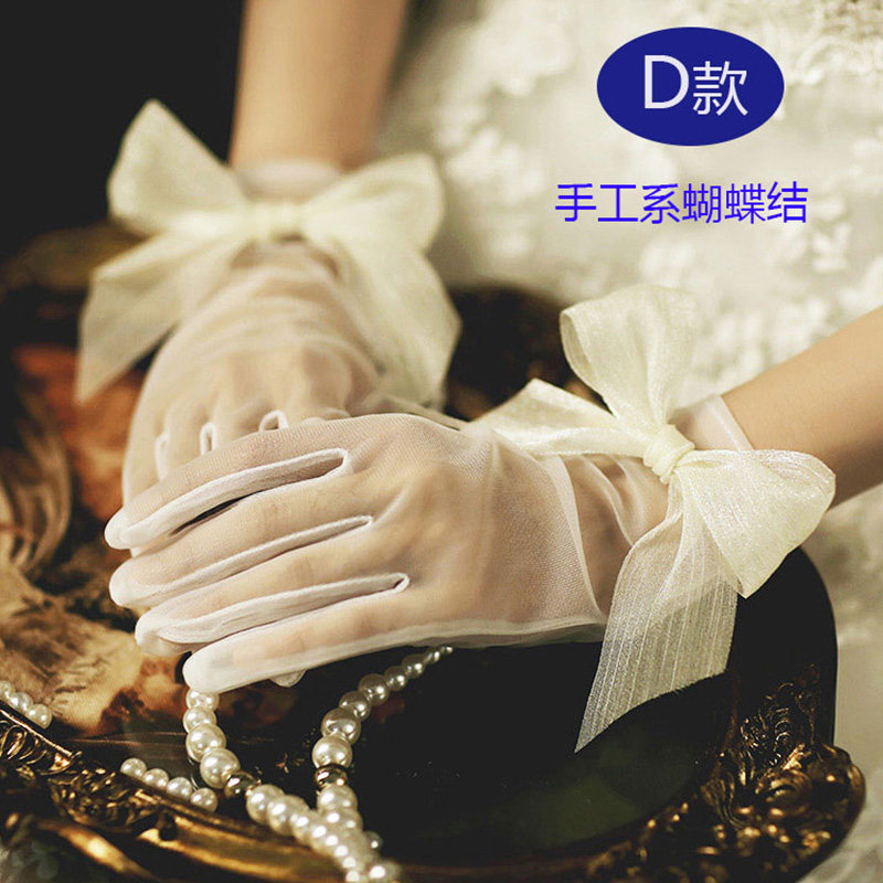 Bridal Wedding Dress Gloves Spring Autumn Short lace Gift Instrument Brigade Pat White Yarn Hand Yarn Photo Photographic Wedding Gown Accessories Accessories