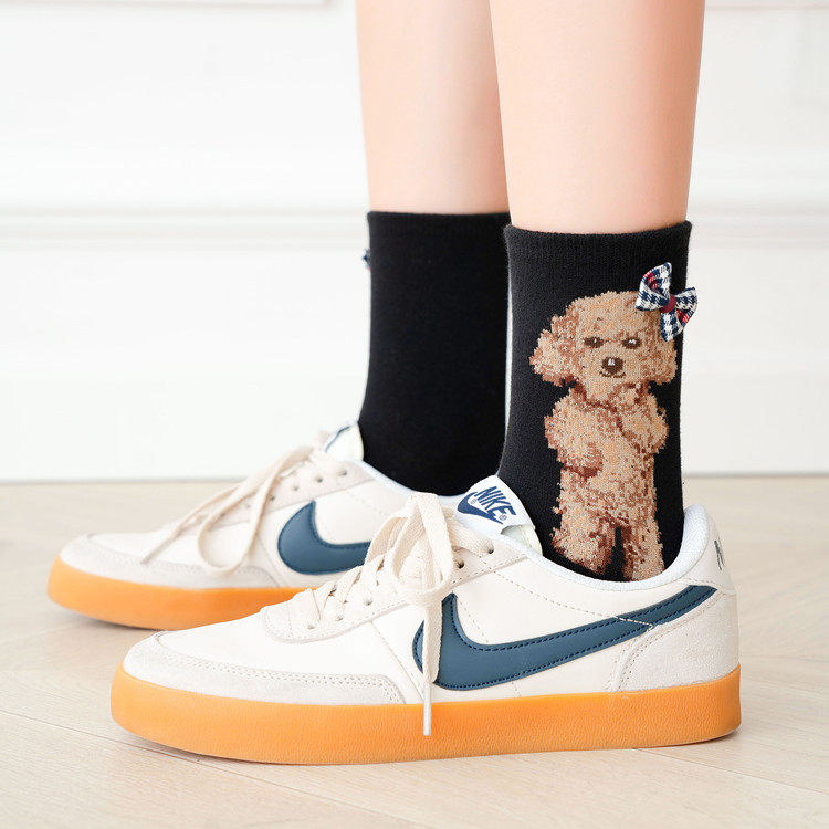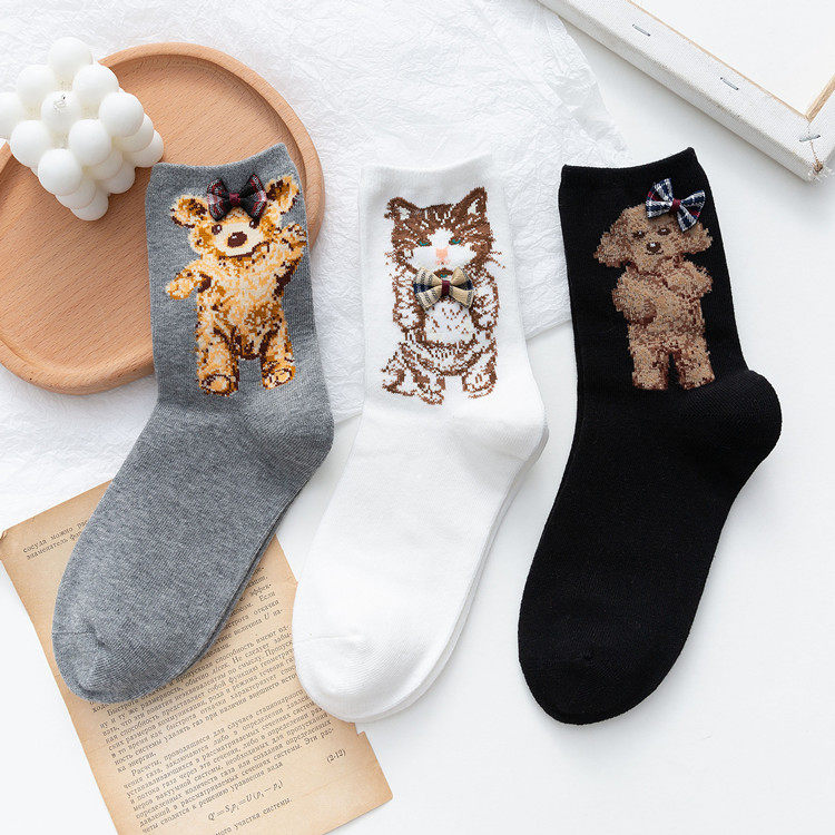 Black Sox Children's Chains Chaochio Socks Han Version Small Bear Short Barrel Autumn Winter Student College Wind JK Women Socks Accessories