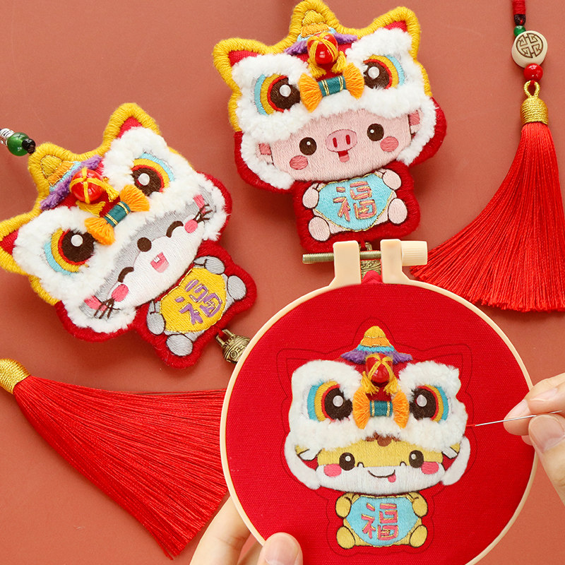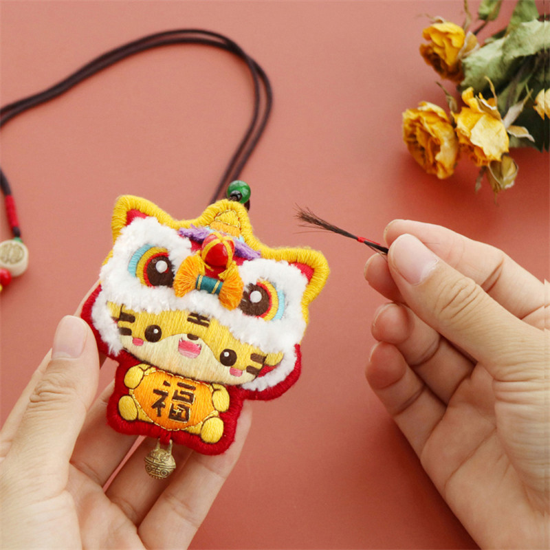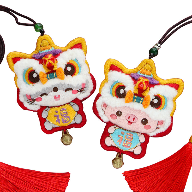 Peace charm handmade diy wake lion embroidery material wrapped tiger amulet to send boyfriend couple keychain peace blessing