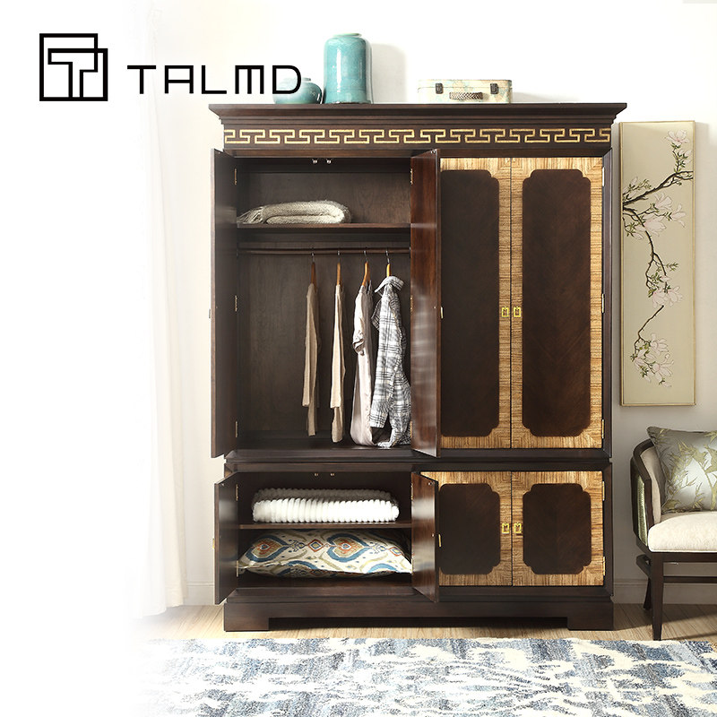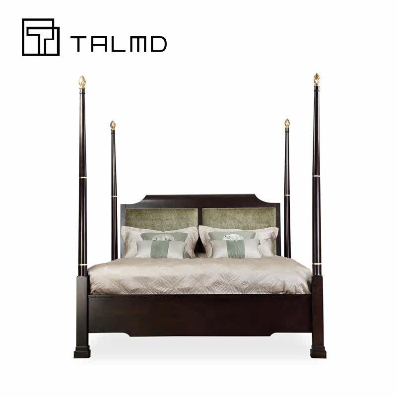 TALMD Tumai Modern Chinese Simple Solid Wood Fabric Double Bed Four-poster Bed Custom Furniture Whole House