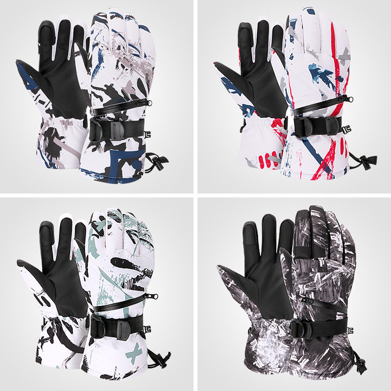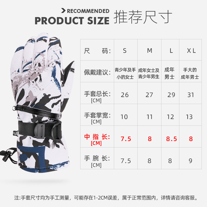Winter ski gloves for women and men professional waterproof veneer double subzero warm touch screen five-finger couple models plus velvet and thick