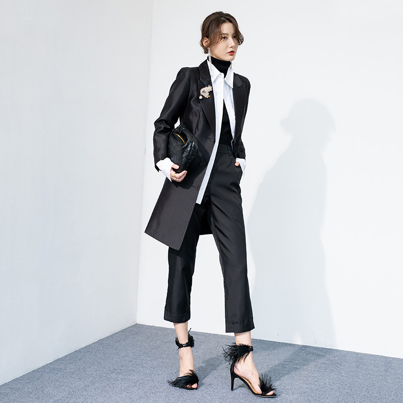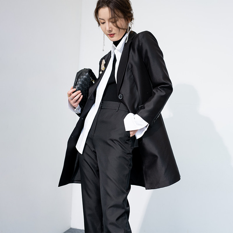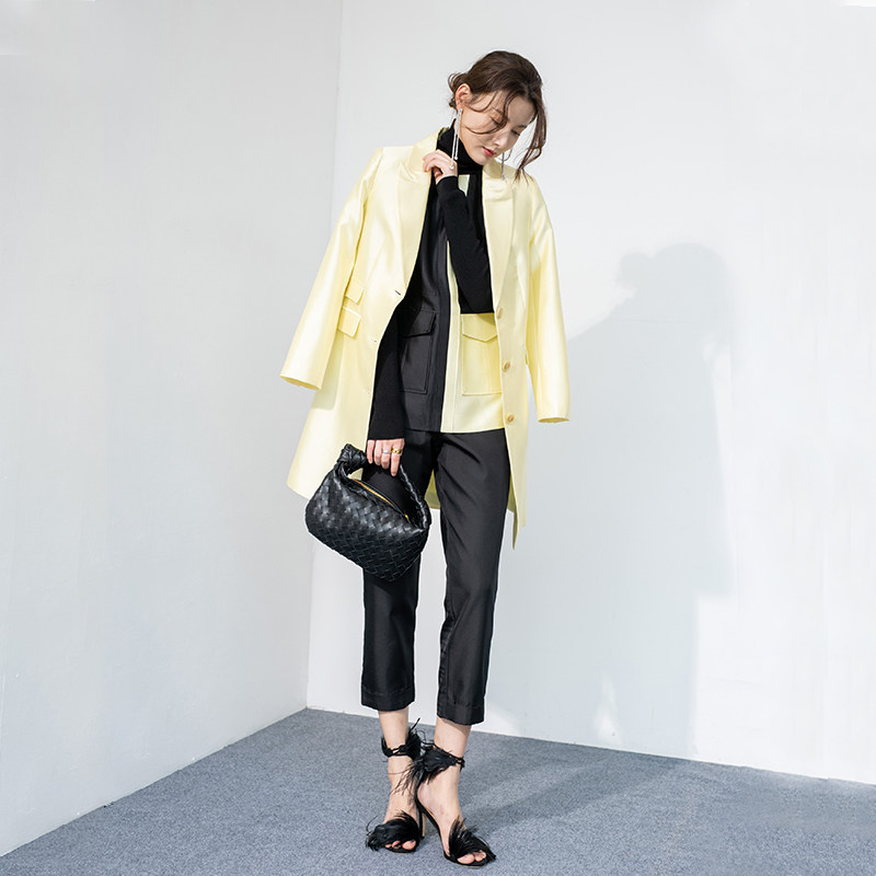JADE SHADW Emerald Shadow original design imported silk wool suit V - collar windshirt coat