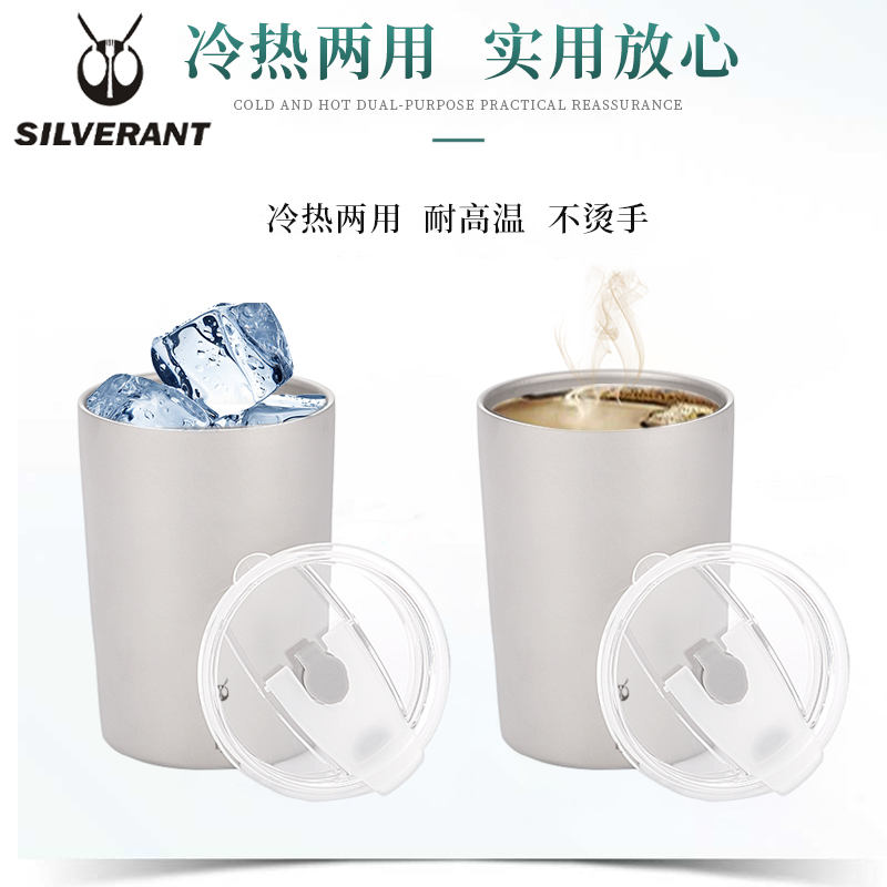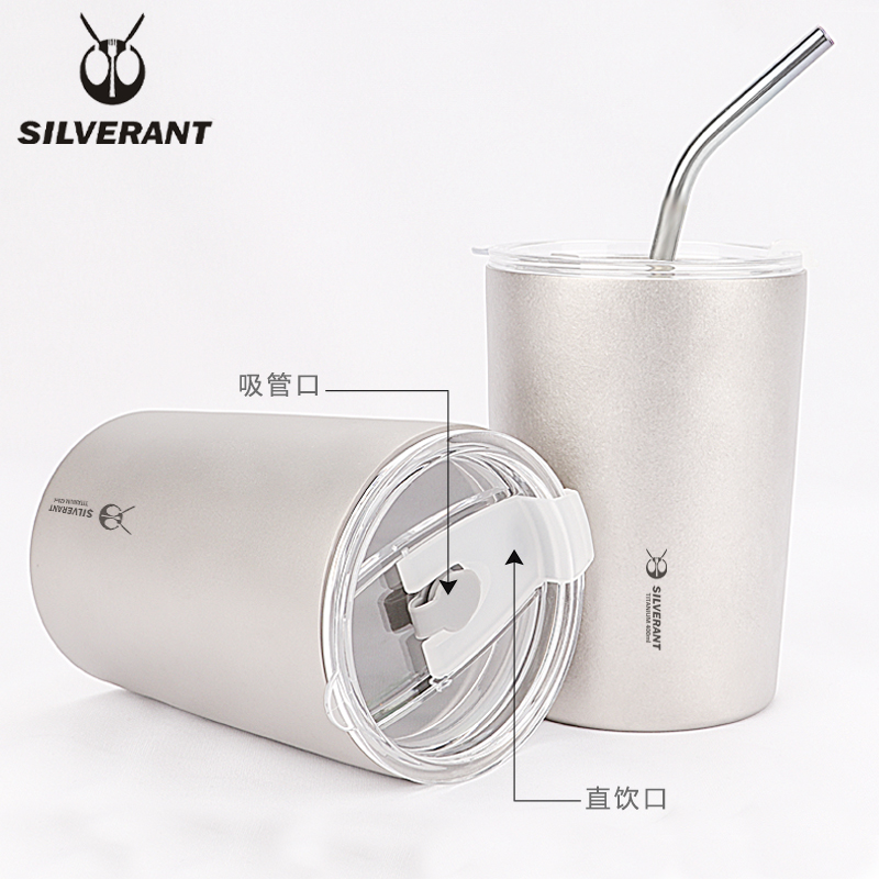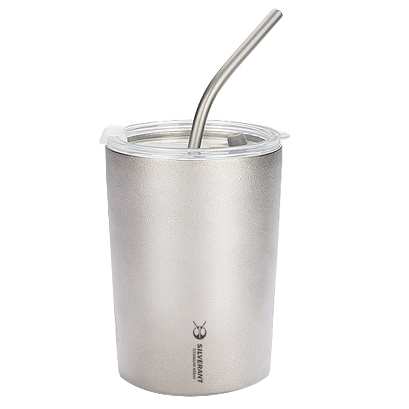 Silverant silver ant straw cup pure titanium double-layer titanium water cup portable car milk tea cup for high-value adults
