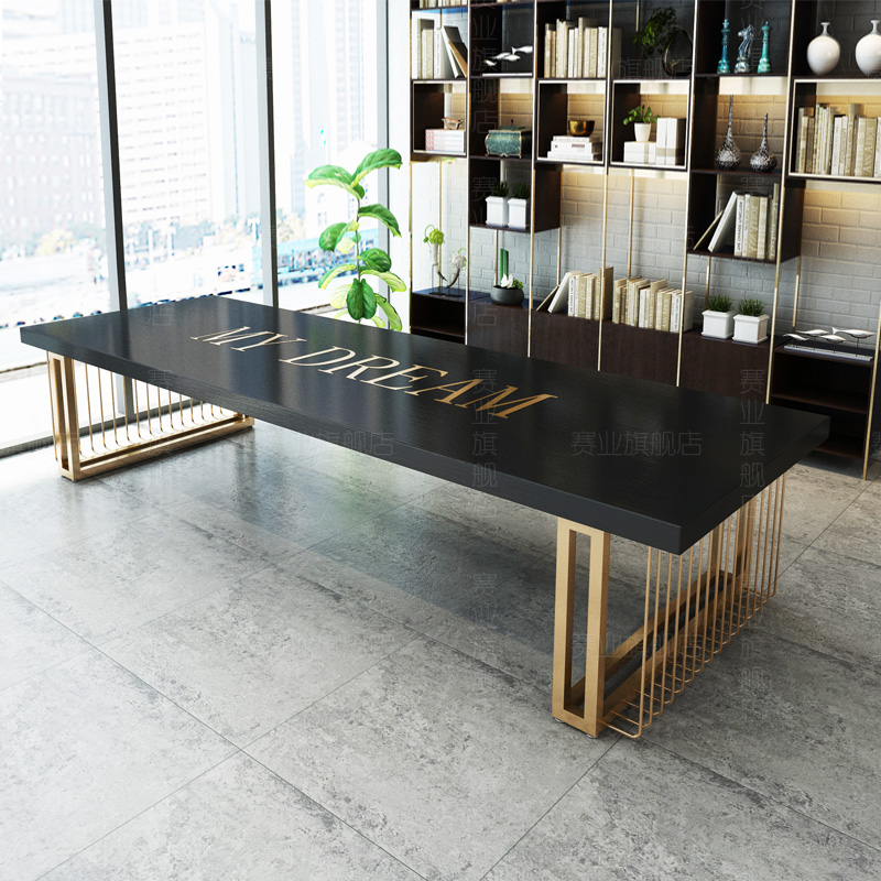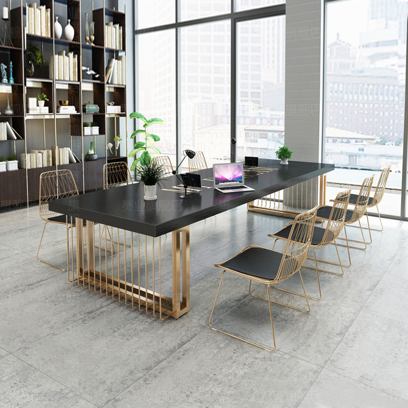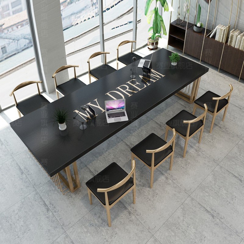 Nordic Light Lavish Log Negotiation Table And Chairs Combination Brief Modern Solid Wood Strip Training Computer Office Conference Long Table