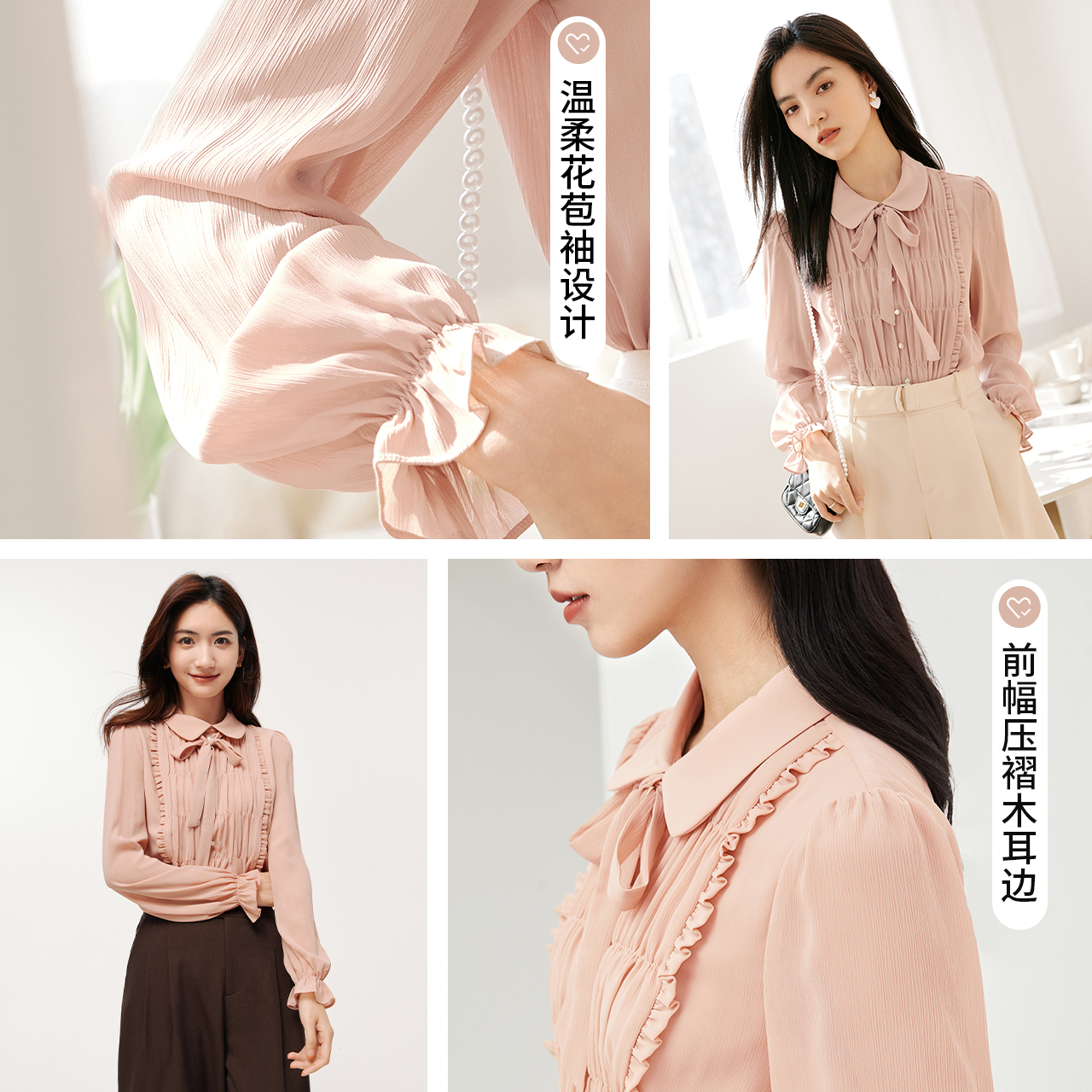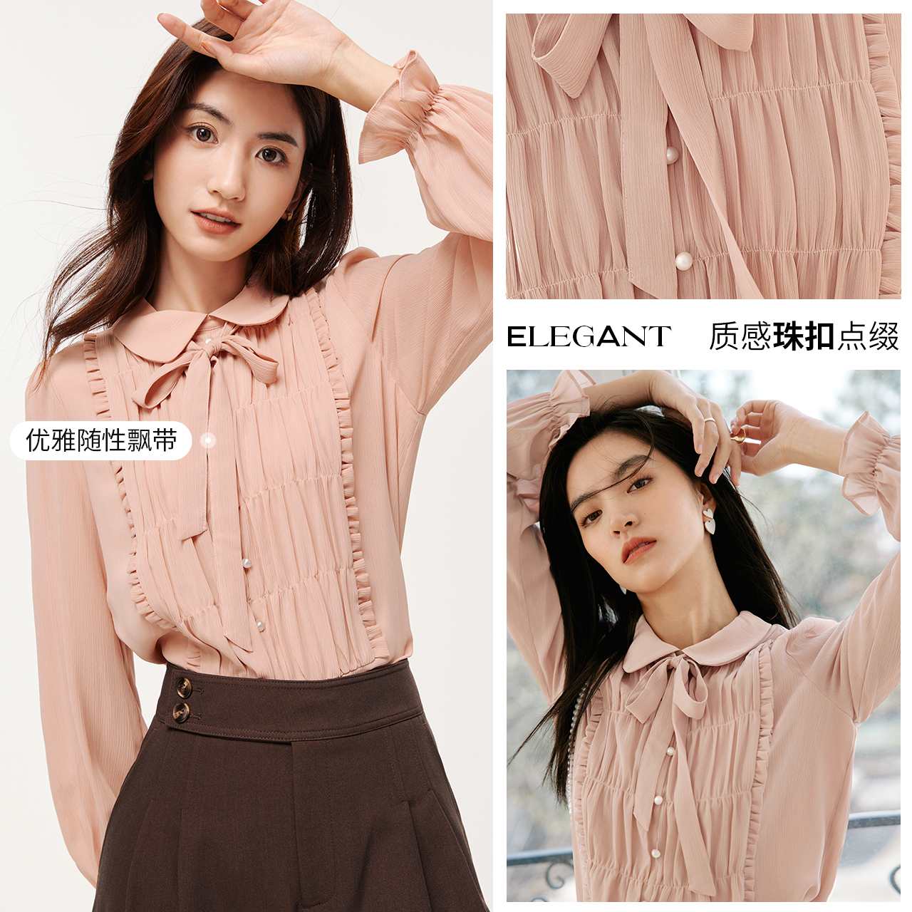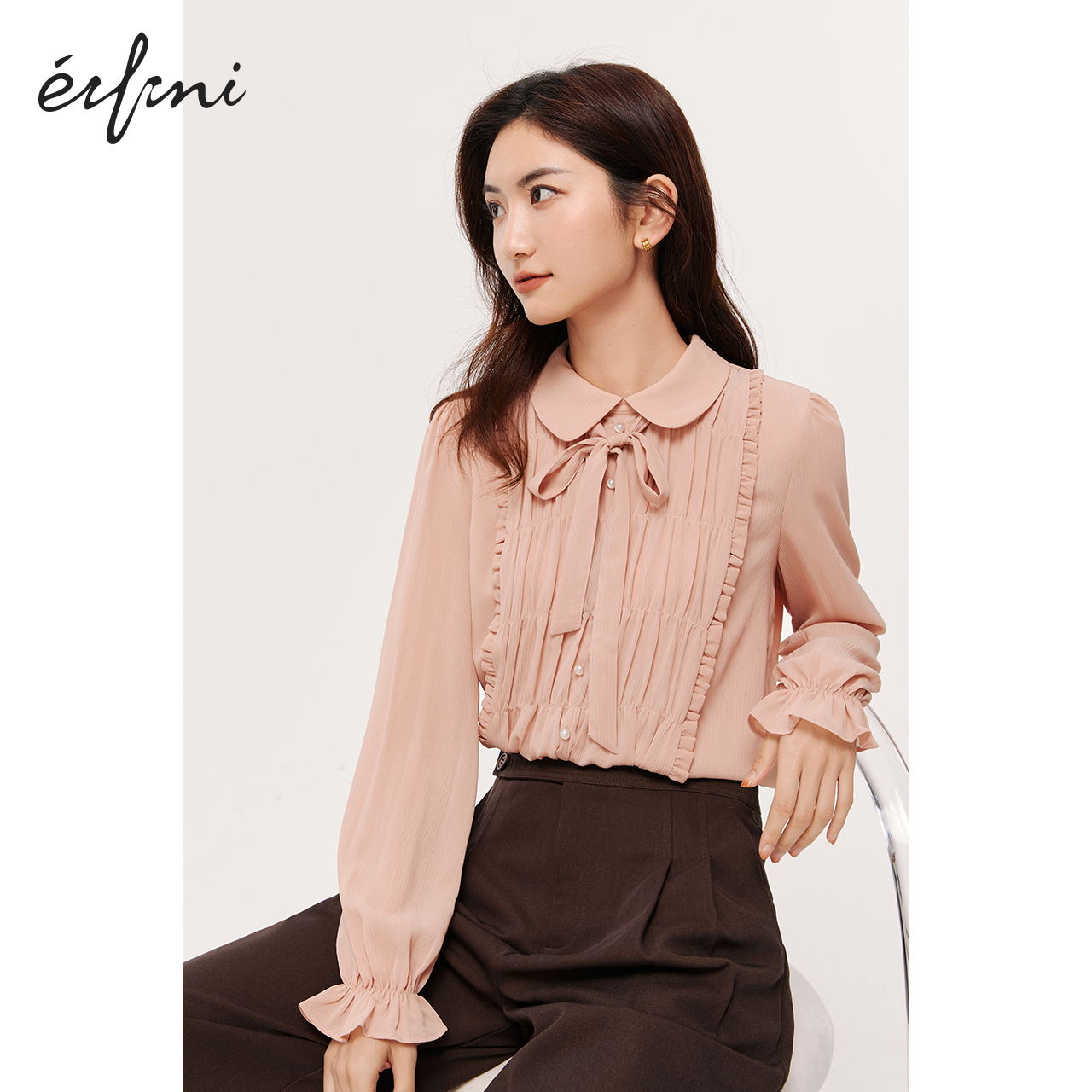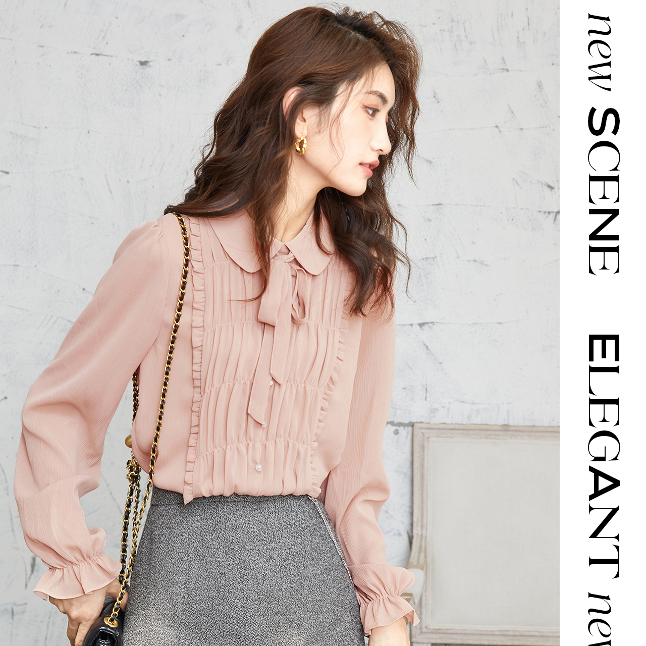 Iveli 100 lap shirt woman long sleeve 2022 fall new lady blouse design sensation small crowdspinning shirt woman