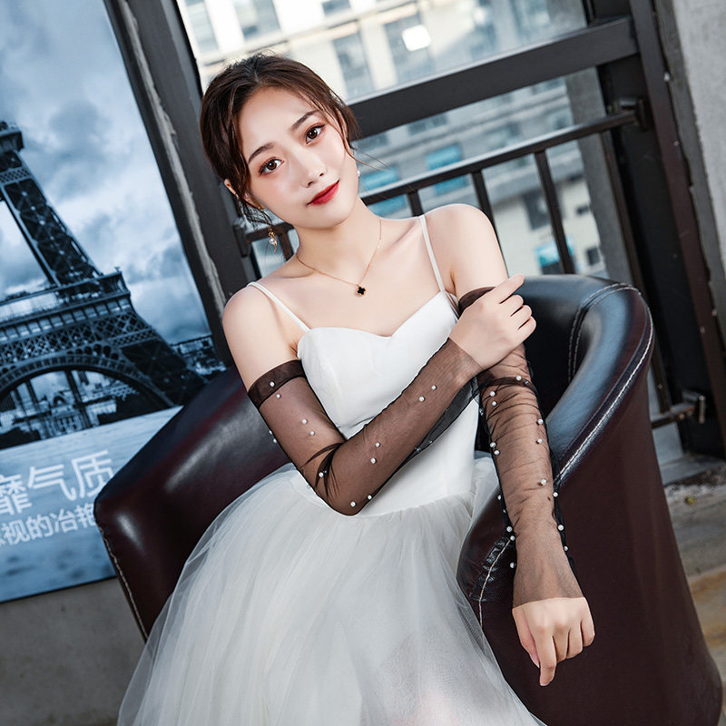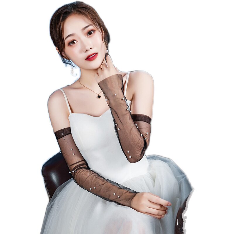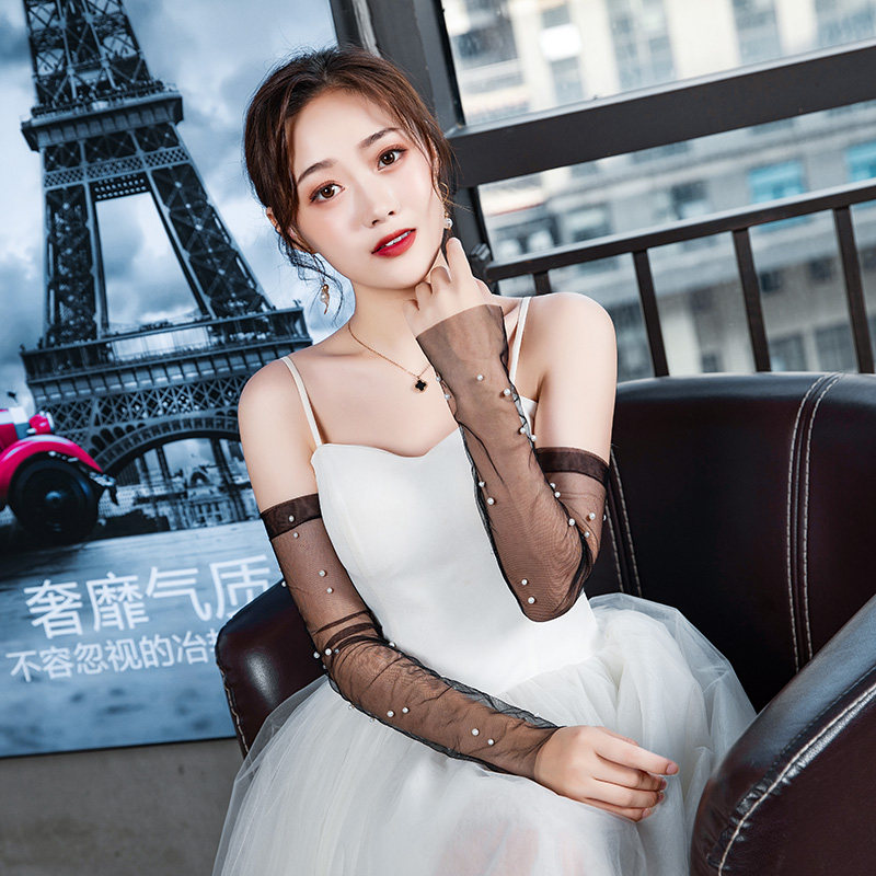 Retro dress long gloves female mesh thin section photo photo annual meeting party reception dinner cheongsam black gloves