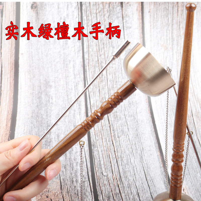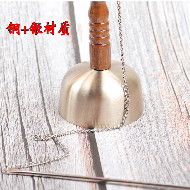 Authentic Taiwan chime green sandalwood solid wood straight handle chime instrument pure copper with silver percussion long handle Yinqing pure copper cited