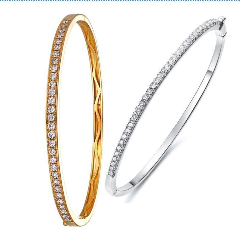Sterling silver gold-plated single row diamond bracelet pure 18K white gold single row bracelet pure 18K rose gold single row diamond bracelet pure 18K gold single row diamond bracelet