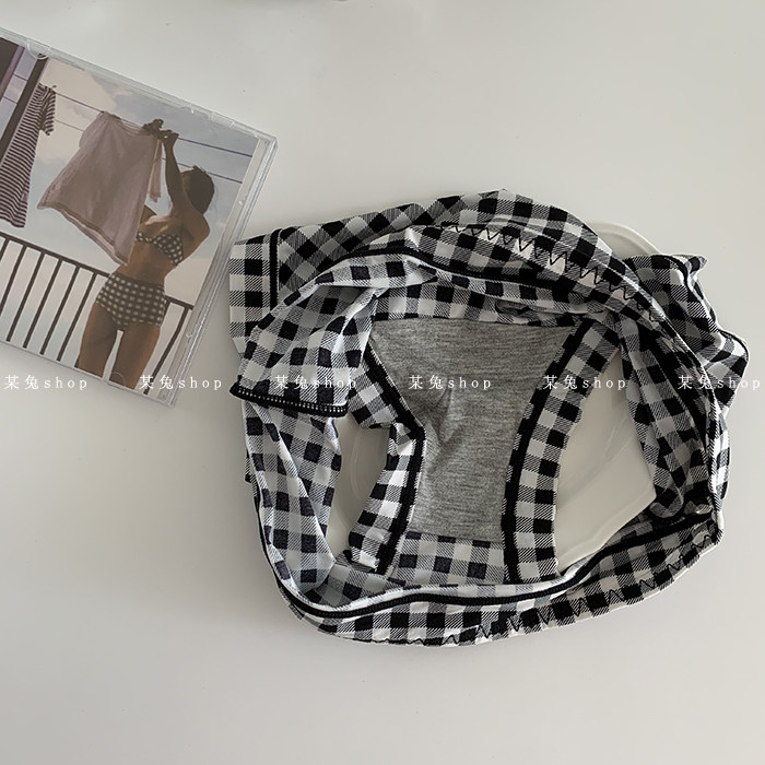 Lukewarm Wind Black-and-white Plaid Ice Silk Flat Corner Mid-Waist Teenage Girl Ins Air-cooled Color Ensemble Bag Hip Knickers Milk Silk Thin