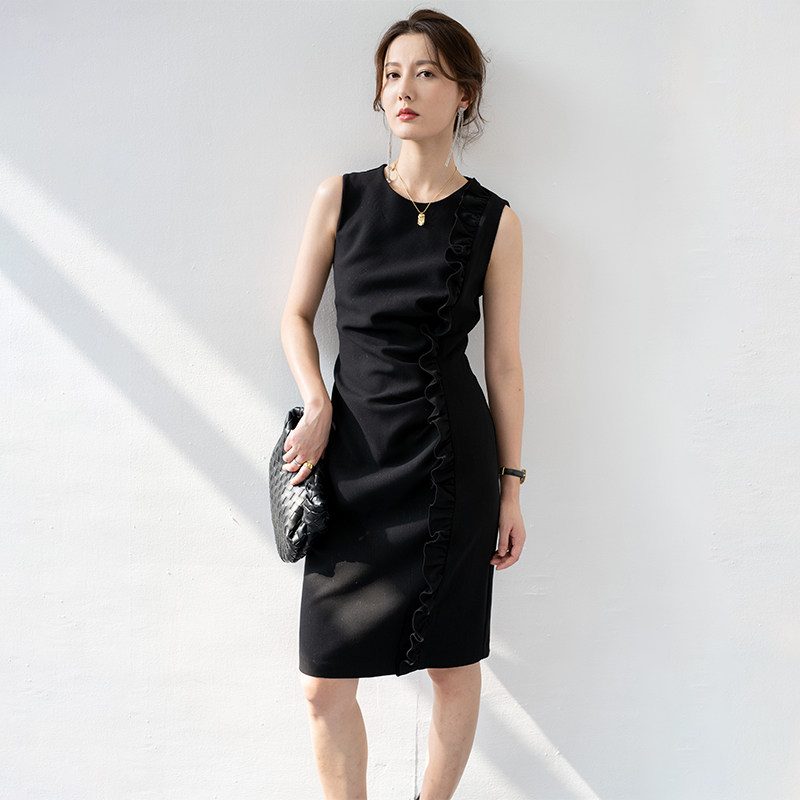 BEEWOOD Original Design of Fashion Fashion Round-collar Loose Leaf Lace Sticking Dress