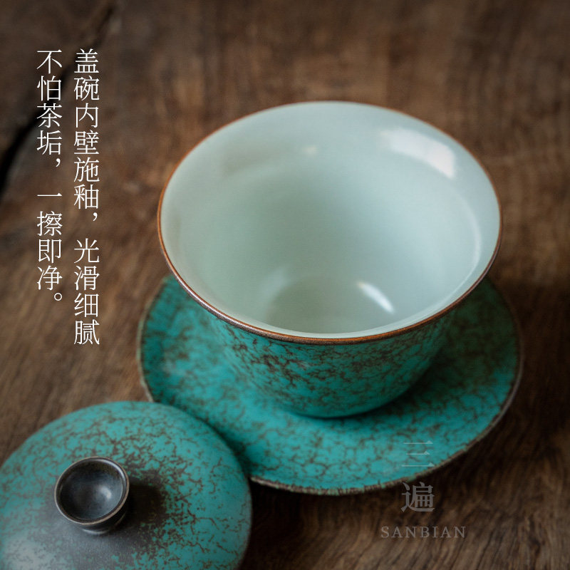 Large tea bowl Three-cai Gaiwan Kung Fu tea set Retro tea ceremony Gaiwan Tea Cup Ceramic tea cup Gaiwan tea single