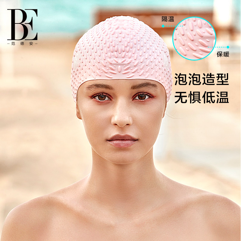 BE Van der An Bubble Waterproof Silicone Swim Cap Women's Swimming Hot Spring Special Hat Large Training Long Hair Not Head