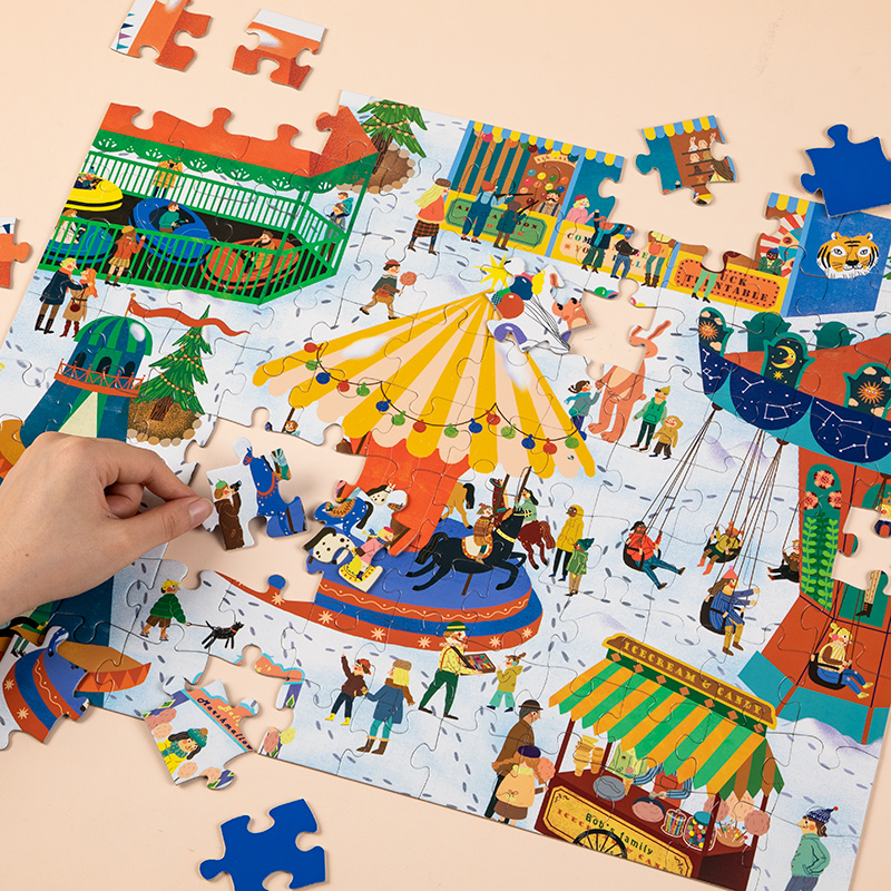 The Lantern Festival (150 block) soccer match (300 blocks) Apple Town (200 blocks) Afternoon Market (500 blocks) Circus (200 blocks) Playground (100 blocks)