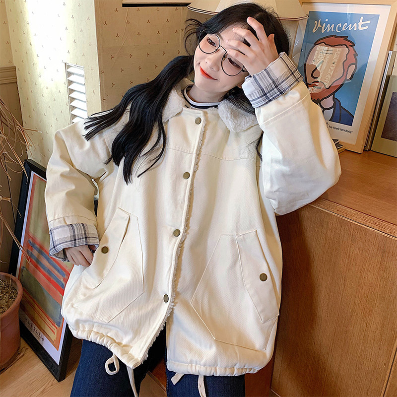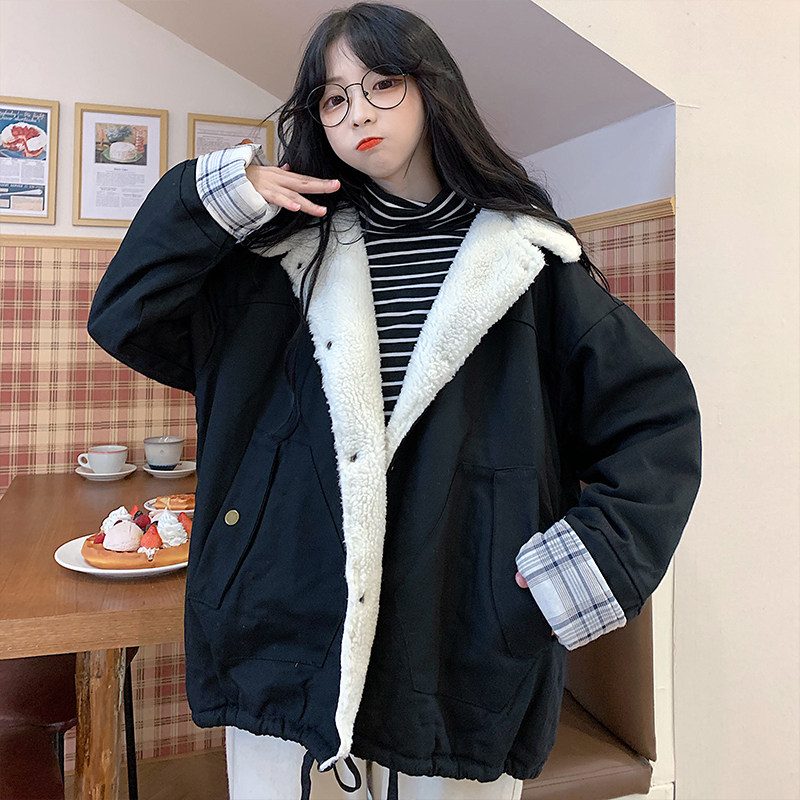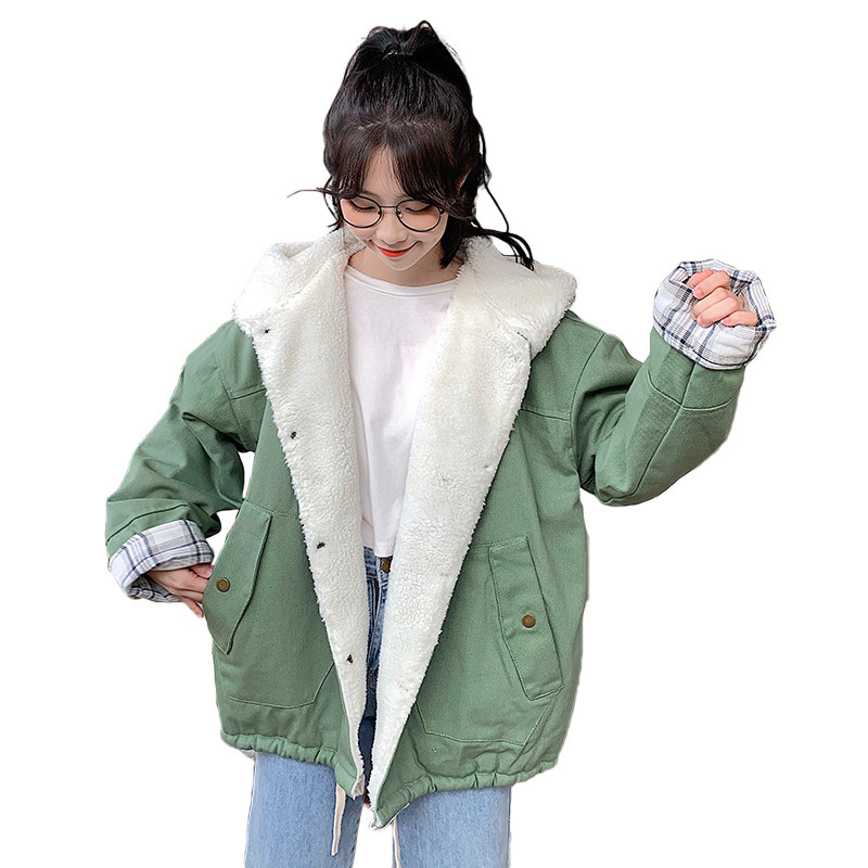 Green plaid sleeves plus velvet thickening Apricot plaid sleeves plus velvet thickening Black plaid sleeves plus velvet thickening Pure gray blue plus velvet thickening Pure apricot plus velvet plus thickening Pure pink plus velvet plus thickening Gray blue
