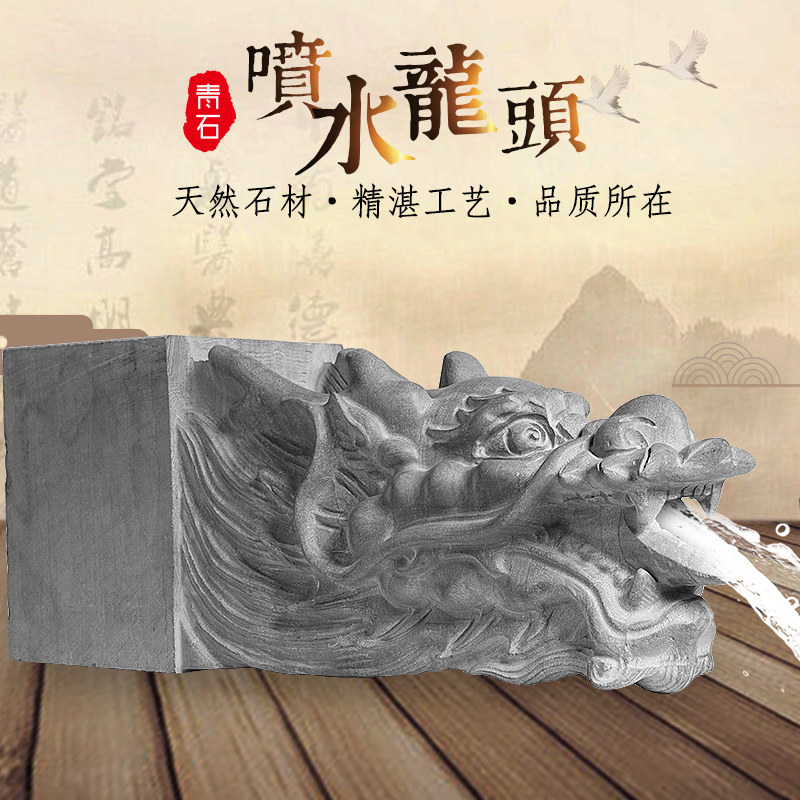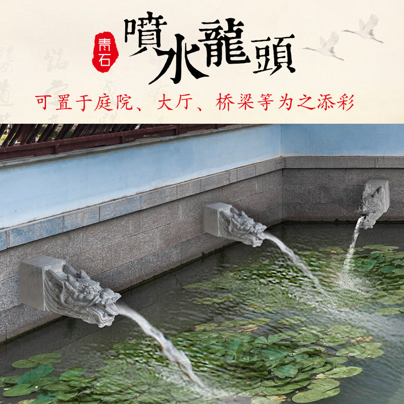 Stone Sculpture Spray Taps Villa Courtyard Flowing Water Green Stone Pendulum Pieces Temple Landscaped Pool Wall-mounted Stone Spitting Taps