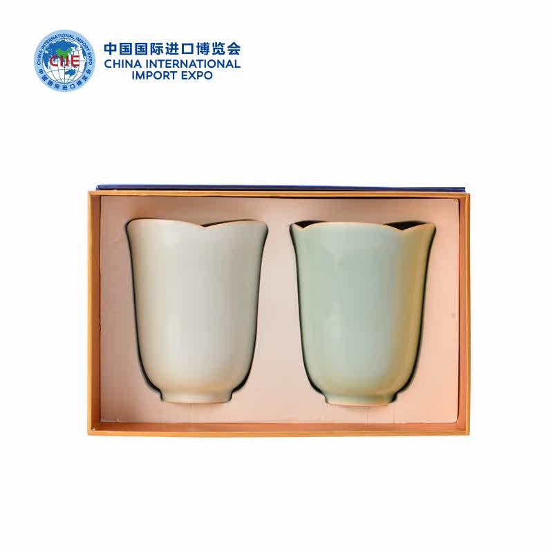 China International Import Expo Four Leaves Grass Lucky for Cup Jingdezhen Jian Yolong Quanqing Porcelain Cup 2 only