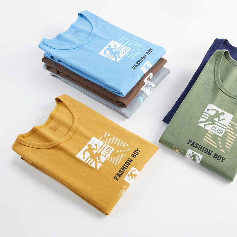 Men's autumn clothes one-piece top pure cotton youth students high school students fashion thin upper body heat jacket round neck