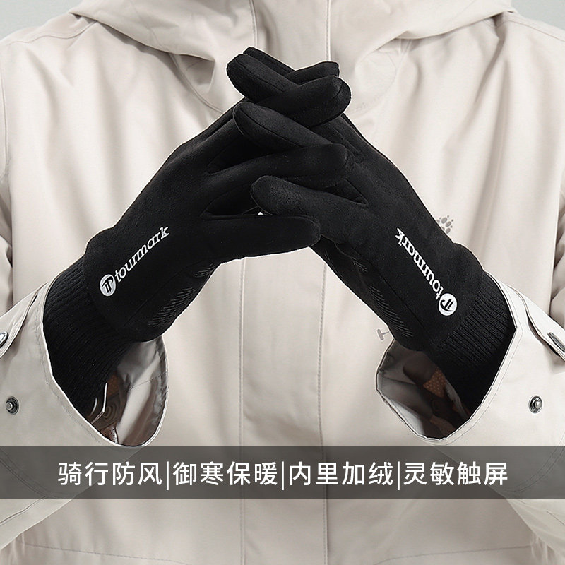 Suede Suede Gloves Men's Summer Plus Suede Warm And Thin touch screen Outdoor riding for climbing Windproof Non-slip