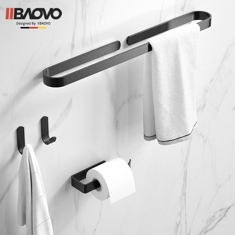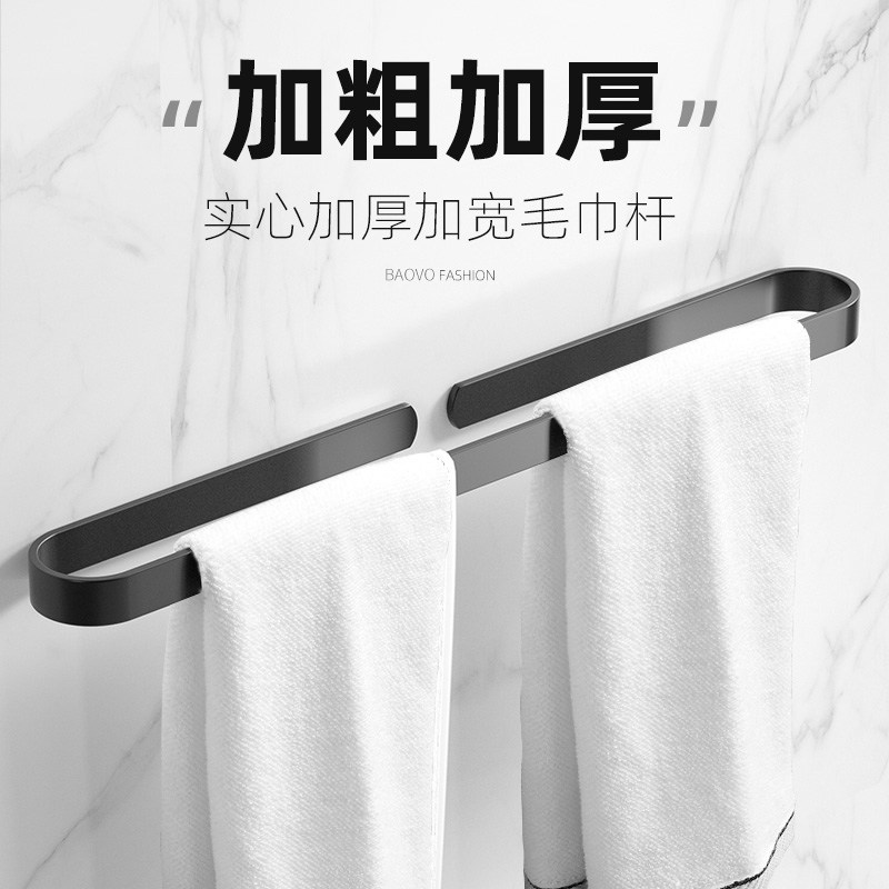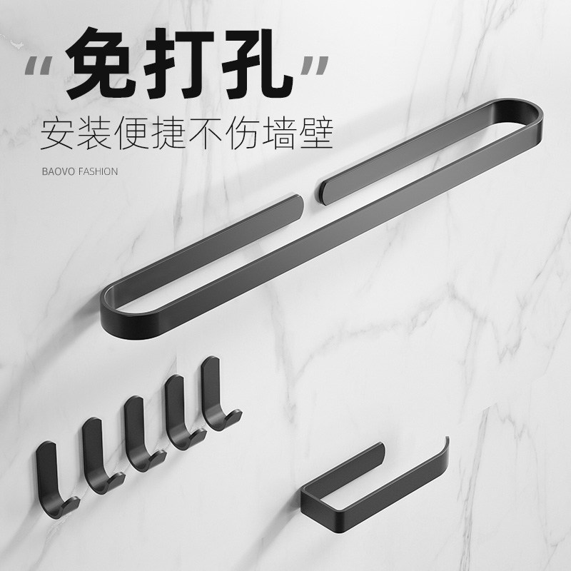 Nordic wind minimalist J-type black hook (free of punch) Nordic drum toilet paper rack (perforated) classic-towel rod 50cm (free of punch) 7-piece suit