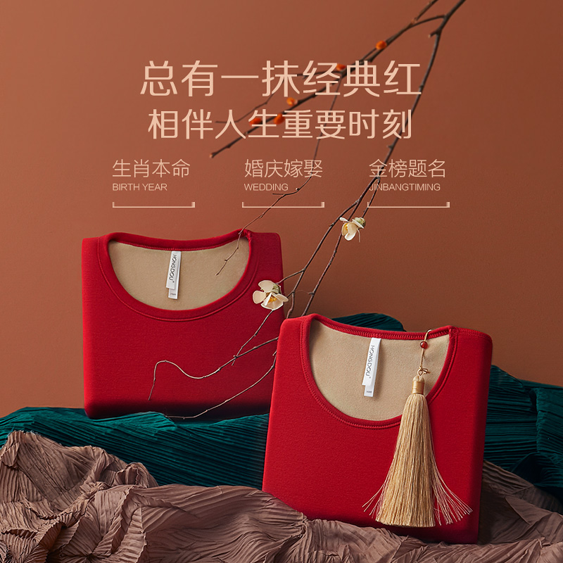 Red bean couple heating clothes big red natal year men and women married plus velvet thick autumn clothes sanitary pants suit winter