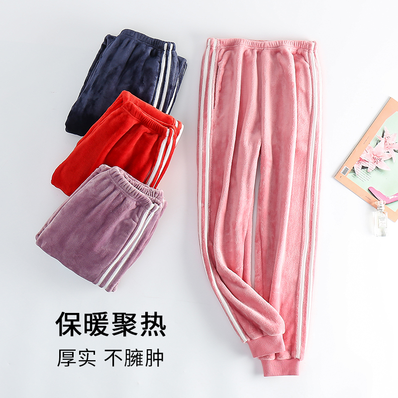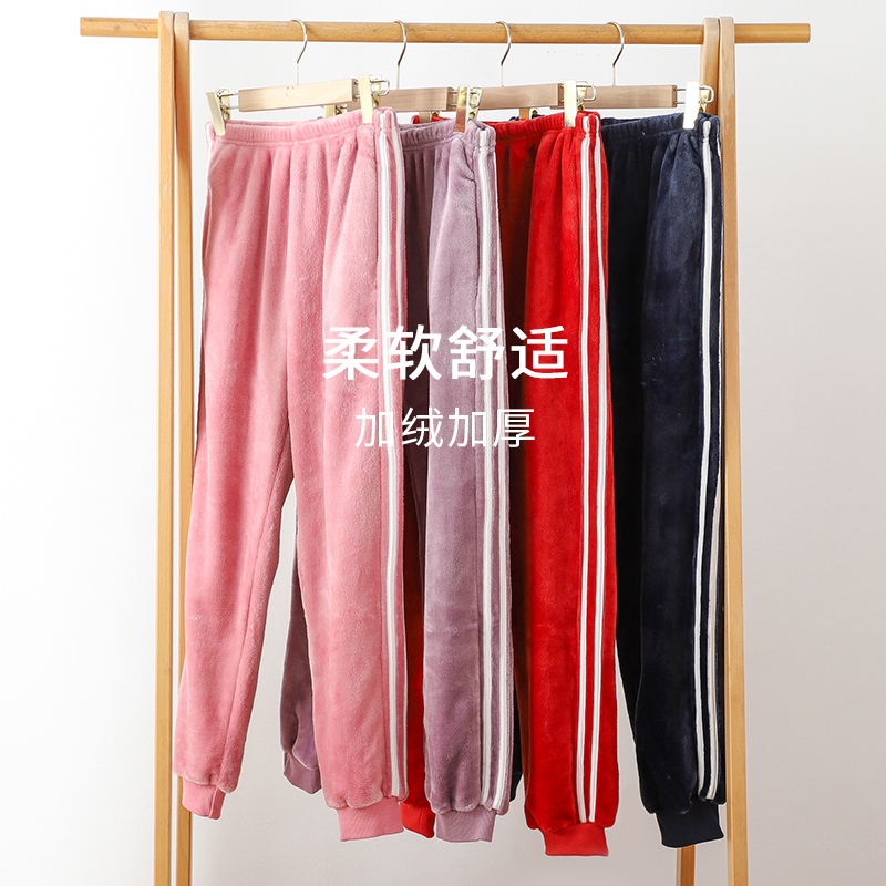 Lady Sleeping Pants Coral Suede Autumn Winter Style Add Suede Thickening Long Pants Spring Fall Flange Suede Home Pants Warm Home Pants