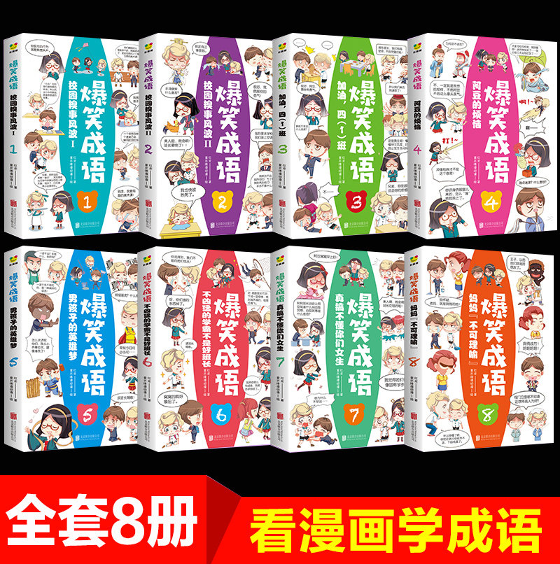 Hilarious idiom comic book full set of 8 volumes of genuine primary school students to see comics to learn idioms story full set of fun idiom solitaire funny campus comic book children's picture book 3456 grade extracurricular books must read teacher recommended reading