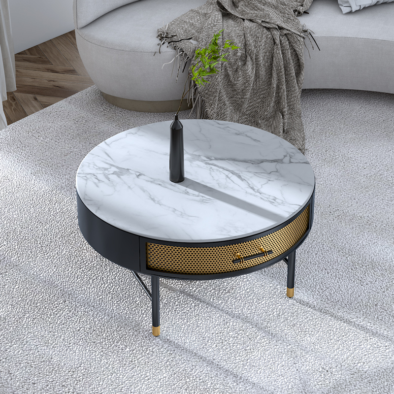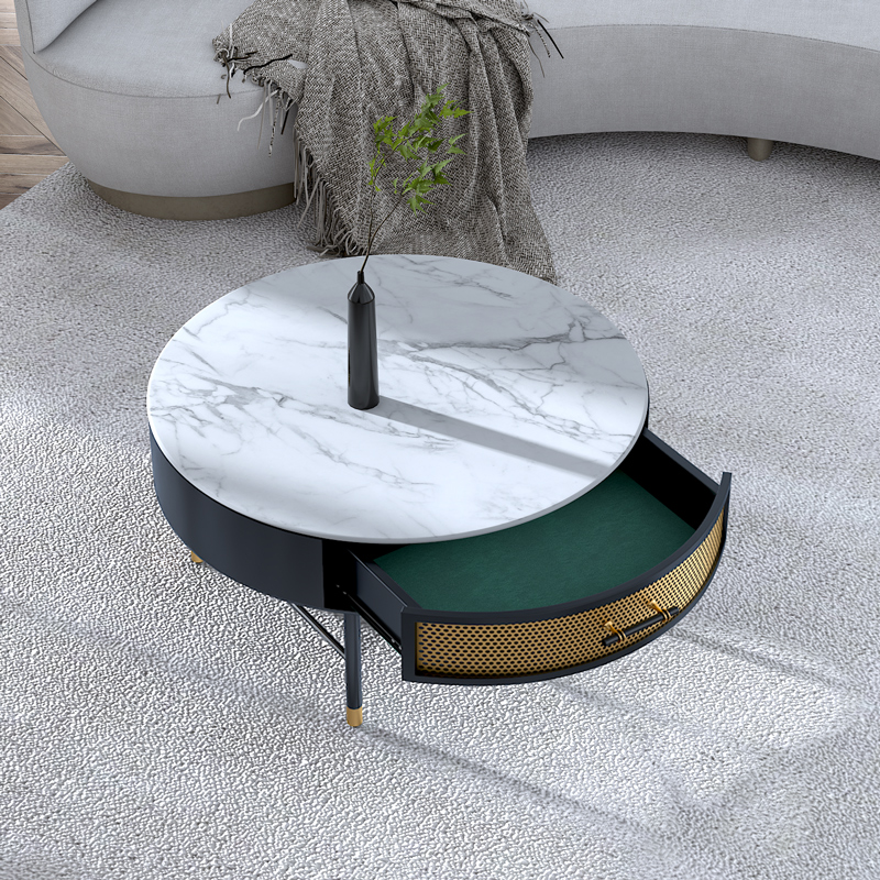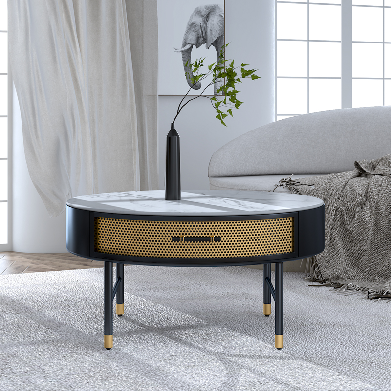 Slate coffee table small apartment simple modern Nordic style marble light luxury high-end round coffee table table living room home - Taobao