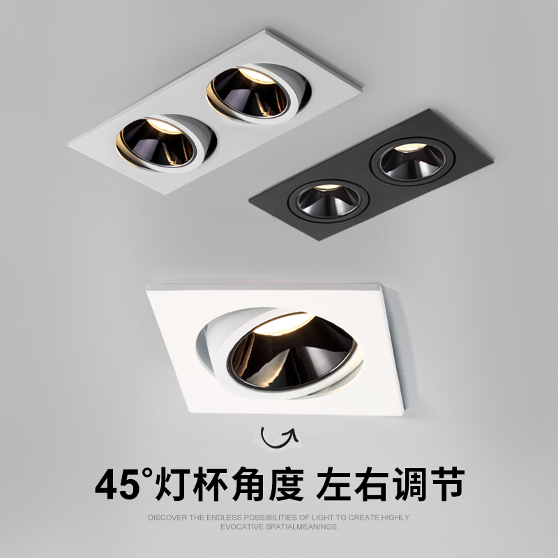 Anti-glare LED double-header square spotlight recessed hole lamp Home Black bucket liner light No main lamp Design ceiling lamp