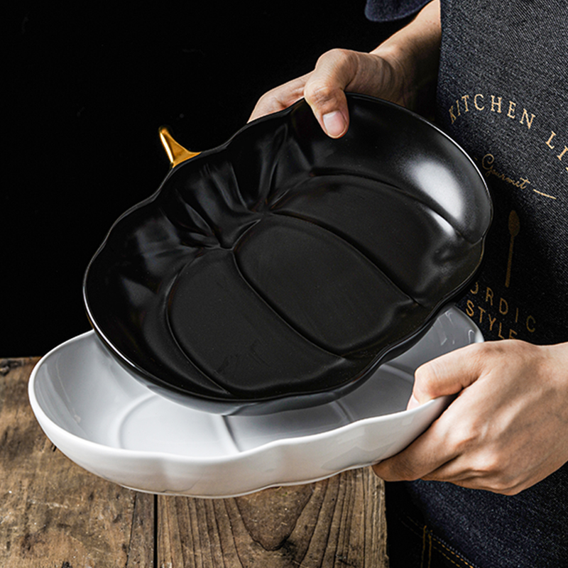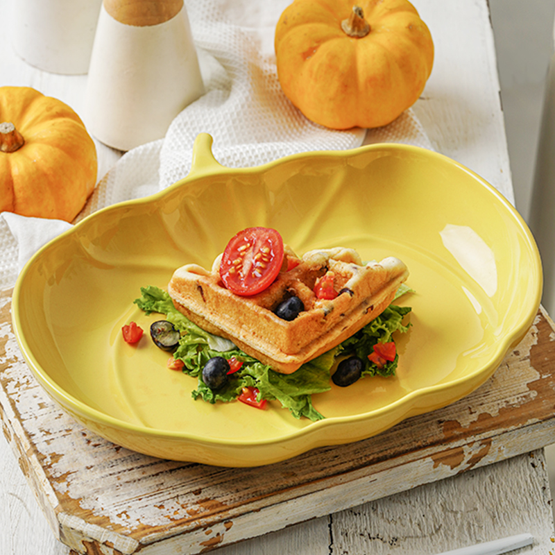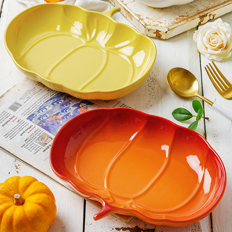 ezicok Pumpkin Plate Breakfast Pan ceramic dish Home Western Dish Day Style Italian Pasta Tray Deep Disc Pan Dessert Pan