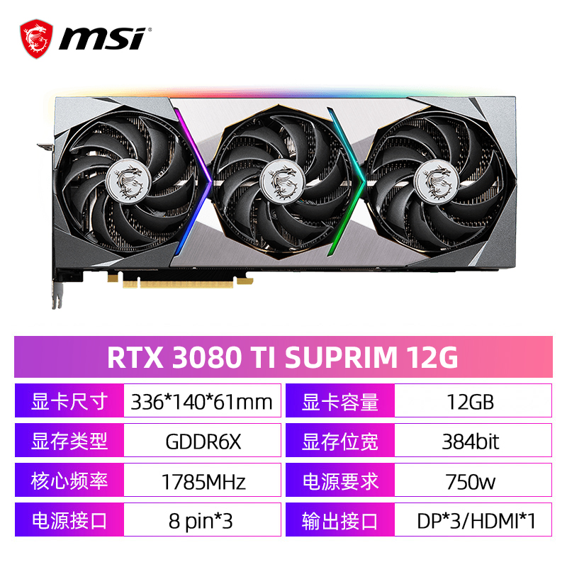 MicroStar RTX3080TI Suprim Wantu Division of Magic Dragon 3080 Superdragon AERO Deep Learning AI Smart Graphics Card