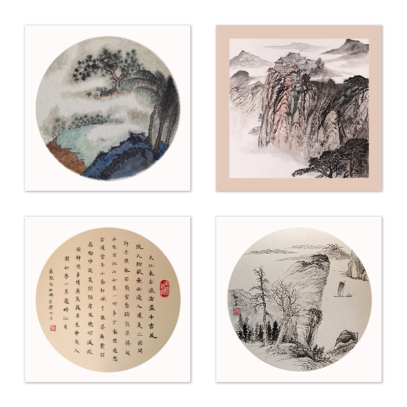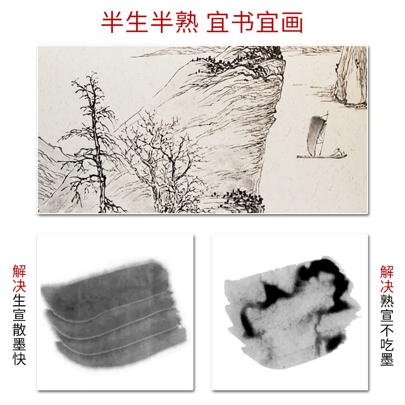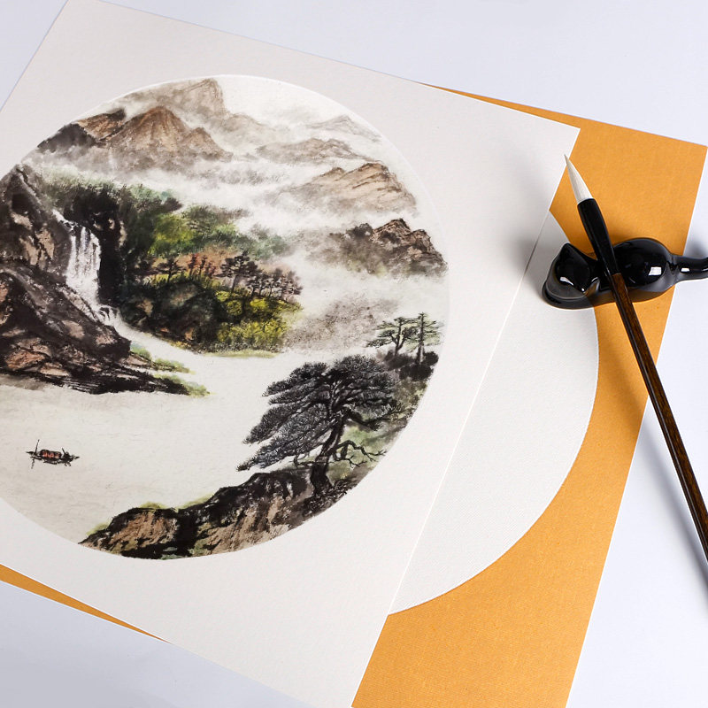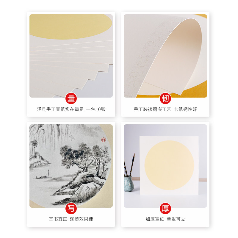 Thickened rice paper Chinese painting cardboard fan rice paper cardboard blank cooked rice paper work stroke brush calligraphy special paper semi-raw watercolor painting soft card round raw xuan xuan lens paper practice writing works paper
