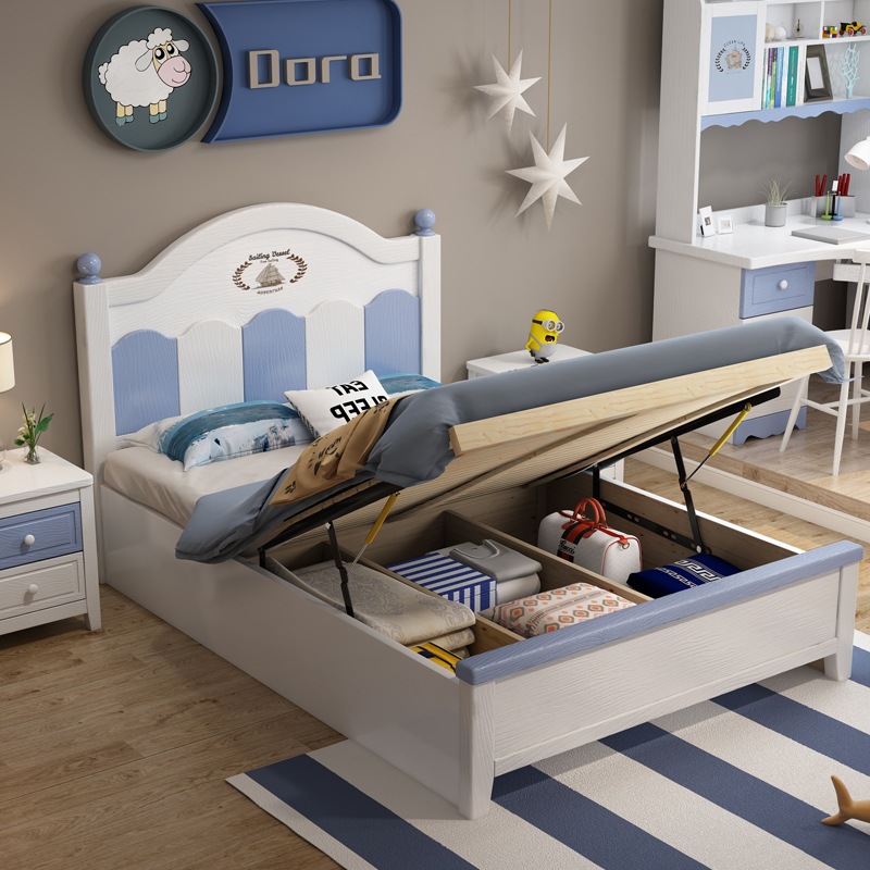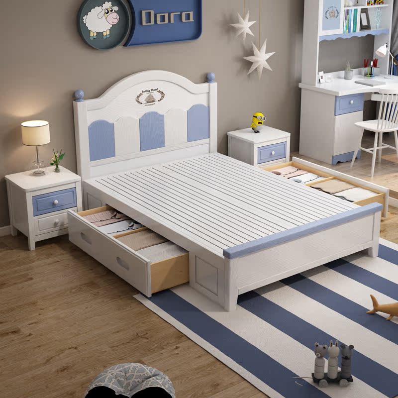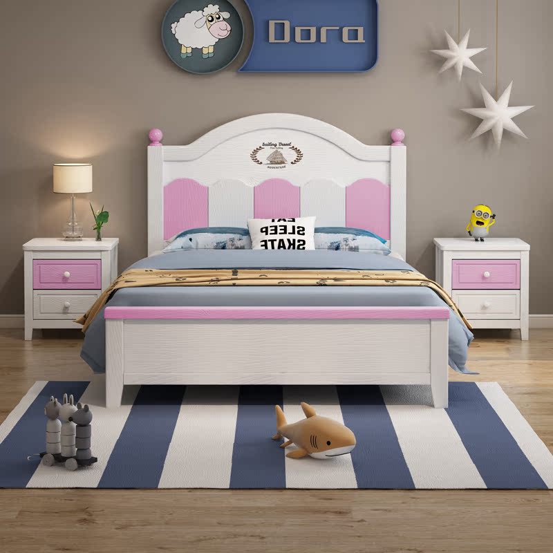 Solid wood male and female children Princess bed Children's bed 1 2 meters 1 35m1 5 teen bedroom suite storage single bed