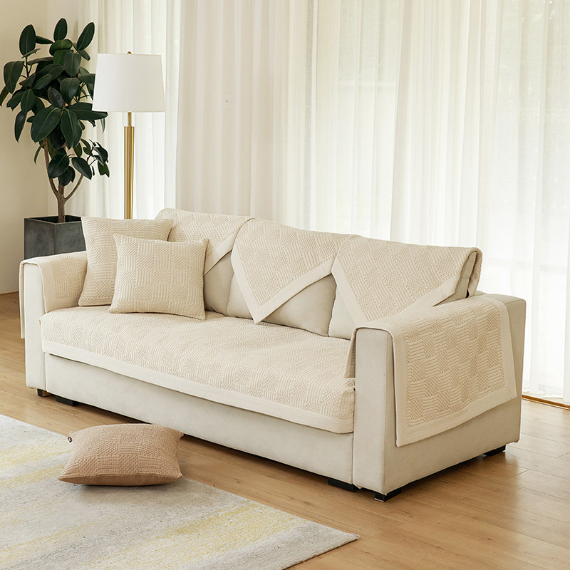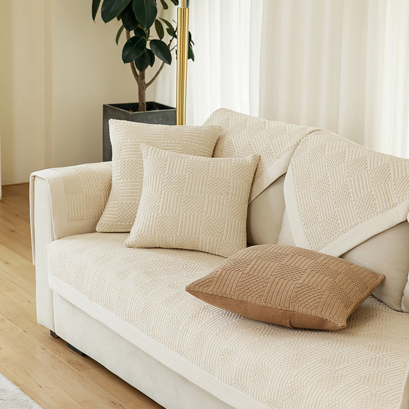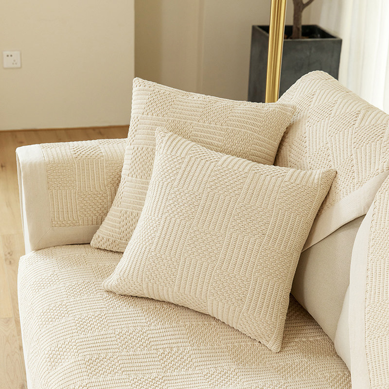 Simple pure color cotton yarn blended fabric sofa cushion four seasons universal thickened non-slip combination cushion multifunctional cushion