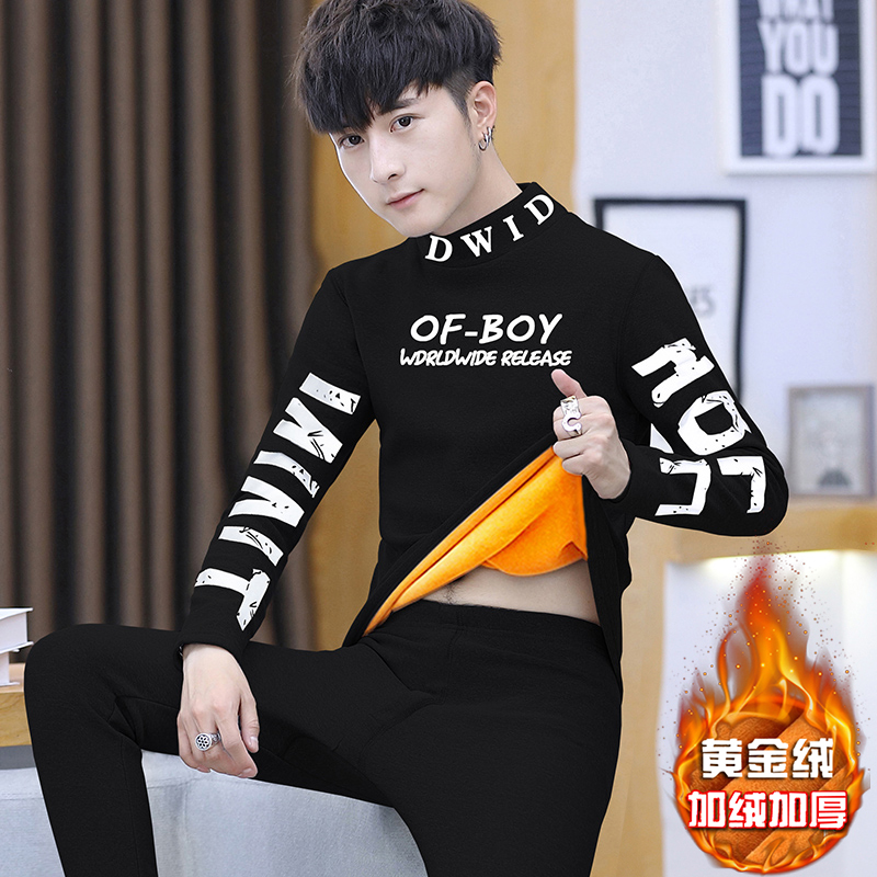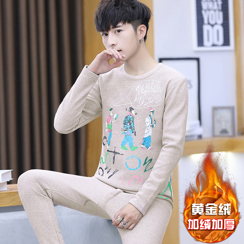 Winter men's thermal underwear suit plus suede thickened undershirt teen student anti-chilling and sweatpants sanitary pants