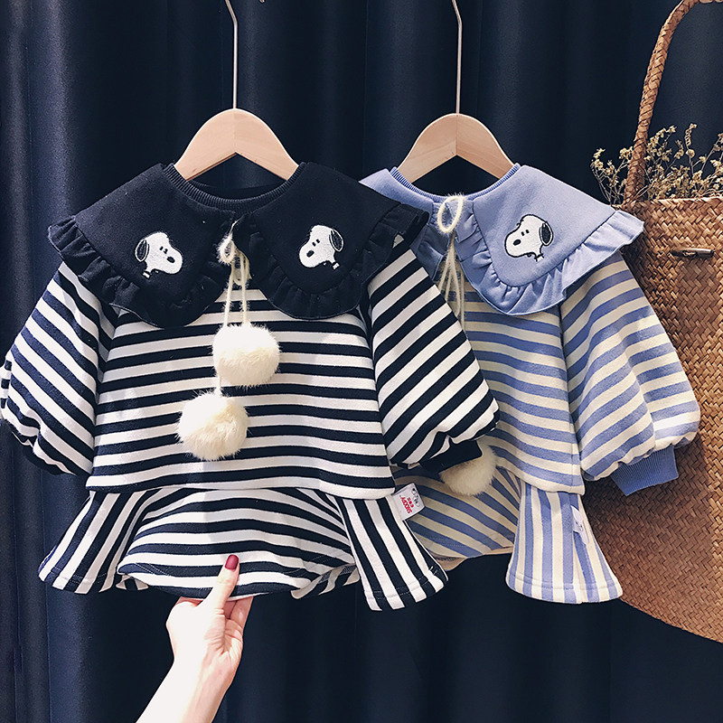 Snoopy SNOOPY girls plus velvet thick dress baby 2022 new autumn and winter children's sweater dress