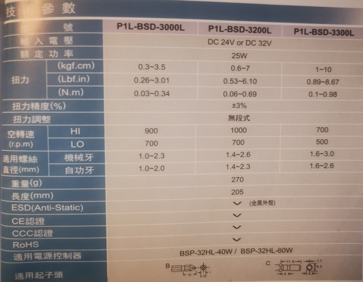 Taiwanese original fitted chic speed P1L-BSD-3000LC 3200LC 3300LC 3300LC electric screw driver electric screw driver