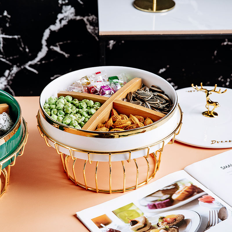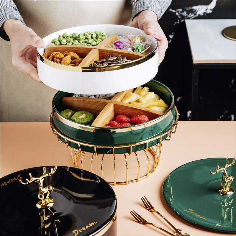 Light luxury round dried fruit plate black-with lid Light luxury round dried fruit plate white-with lid Light luxury round dried fruit plate green-with lid Light luxury round dried fruit plate (double layer-white without cover