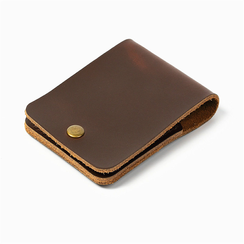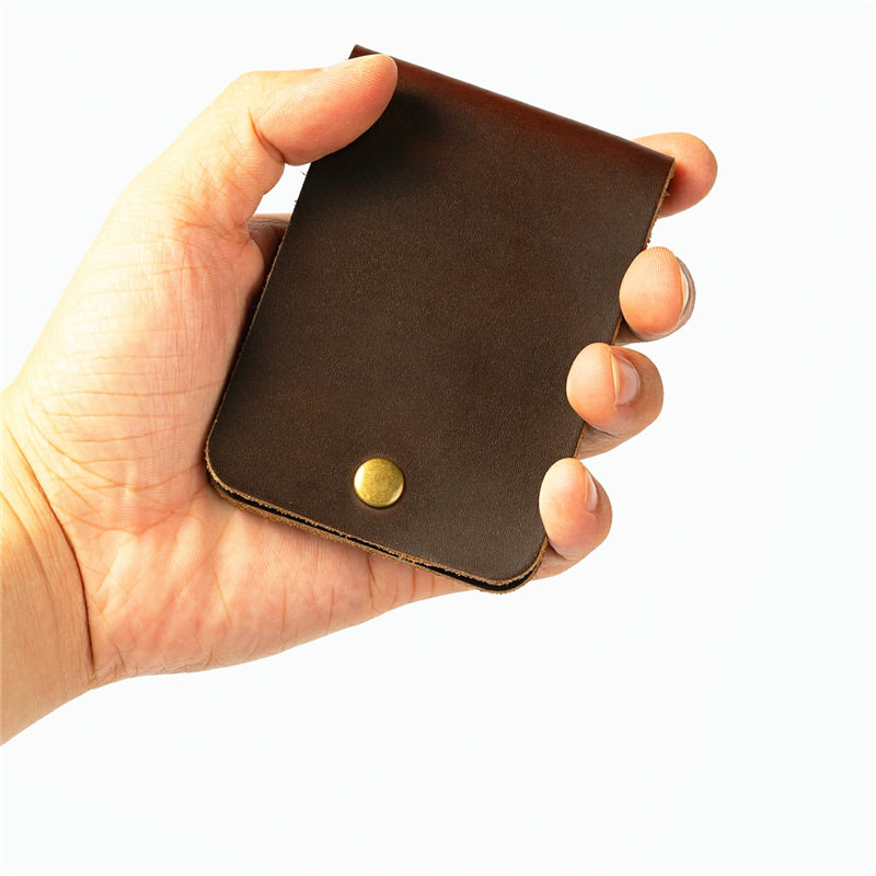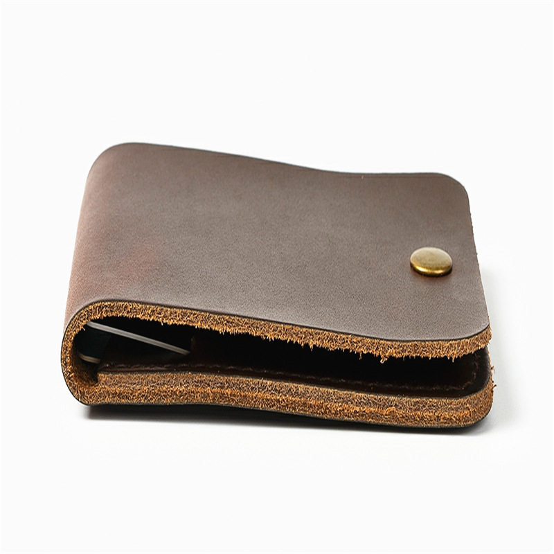 No name hand-made crazy horse leather thin section personality card holder women's bus card case credit button cowhide card holder men