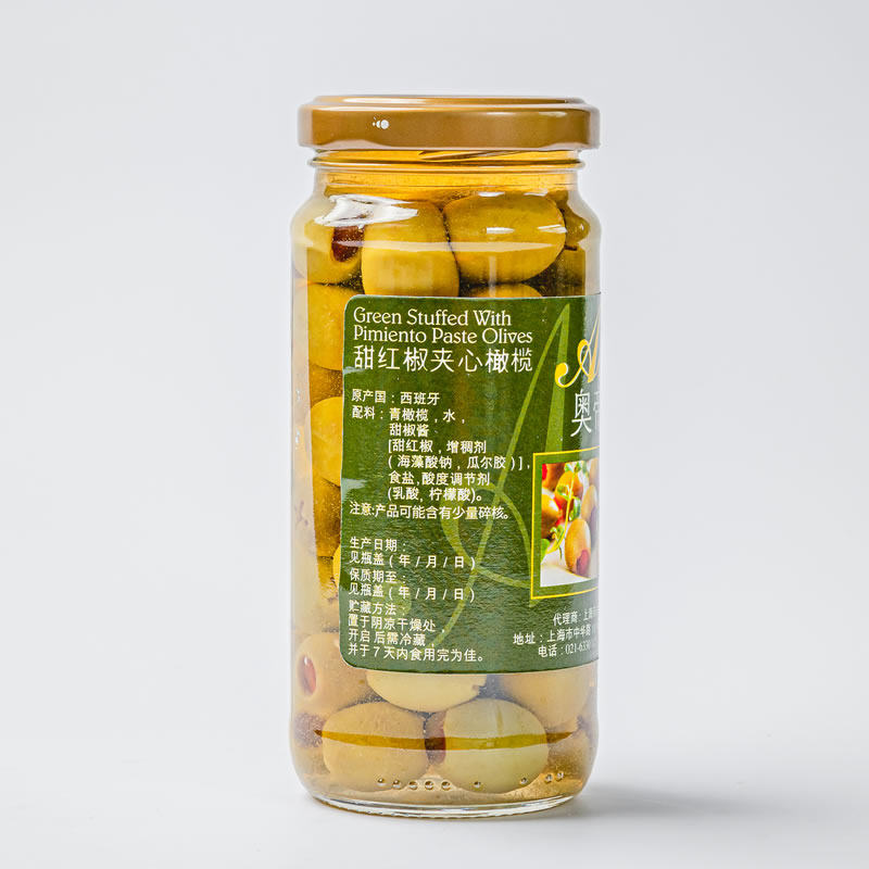 Spanish imports Oimperii sweet red pepper sandwich olive canned 230g green olives Pitted Green Oliv