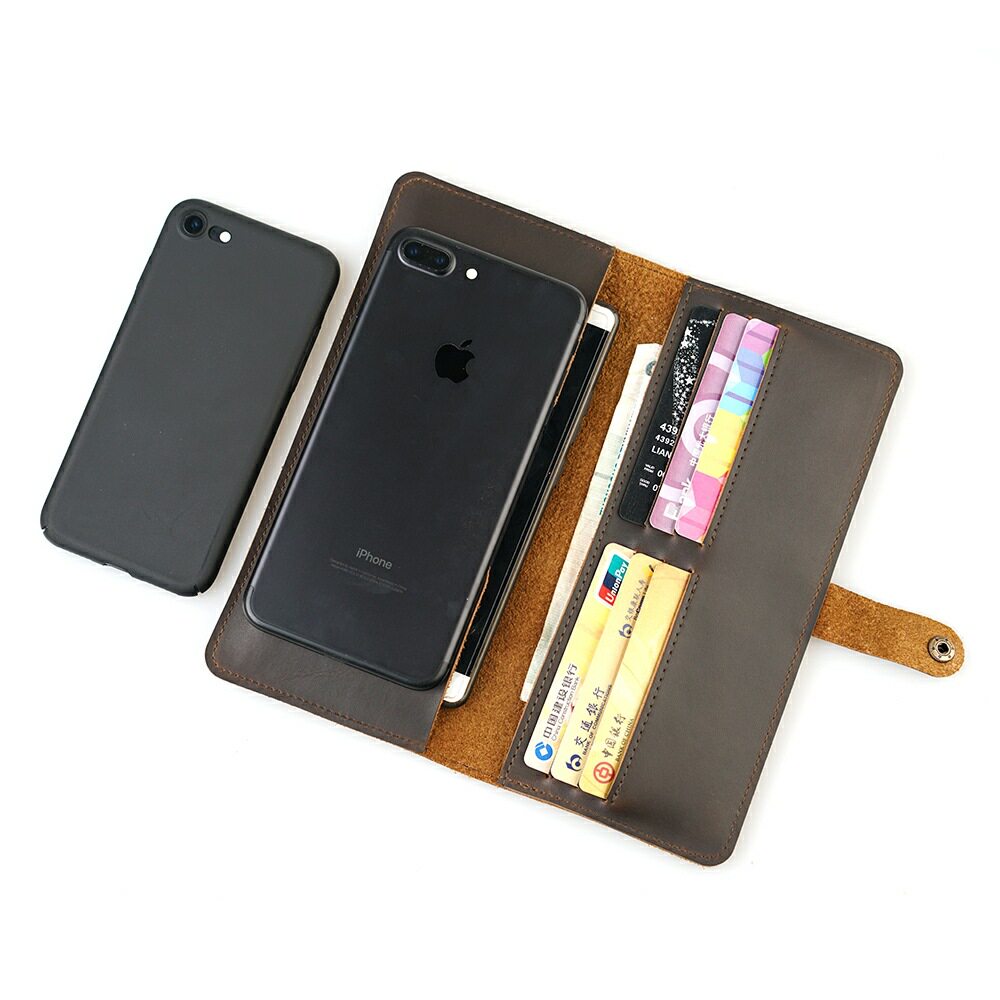 No name handmade cowhide handmade wallet men's mobile phone wallet iphone7p clutch bag women's long fashion