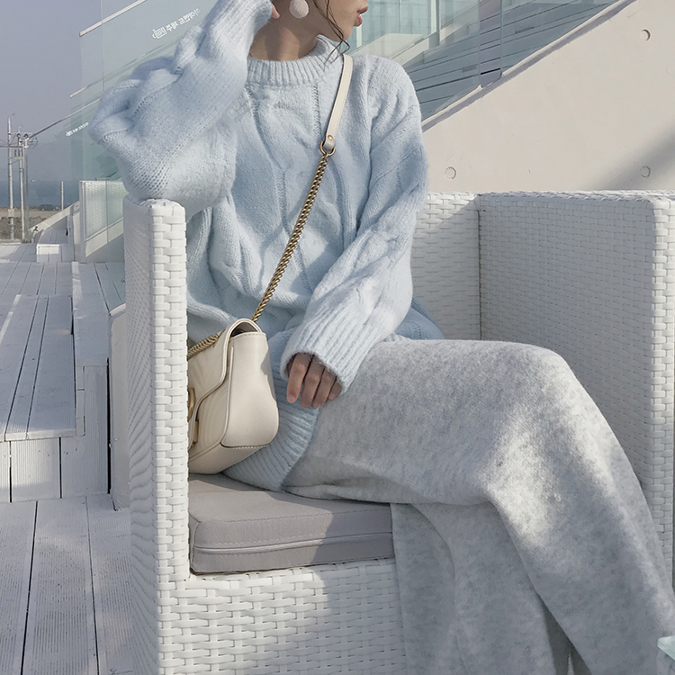 Very Fairy mahimau sweater female hemp flower cover loose with lazy wind 2020 new soft milky blue autumn and winter outside wearing thick