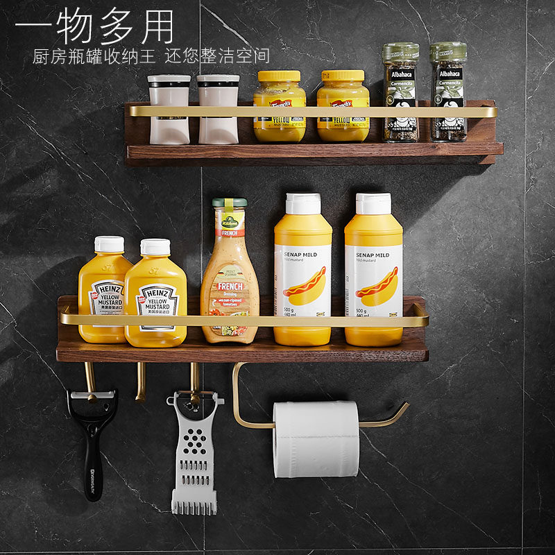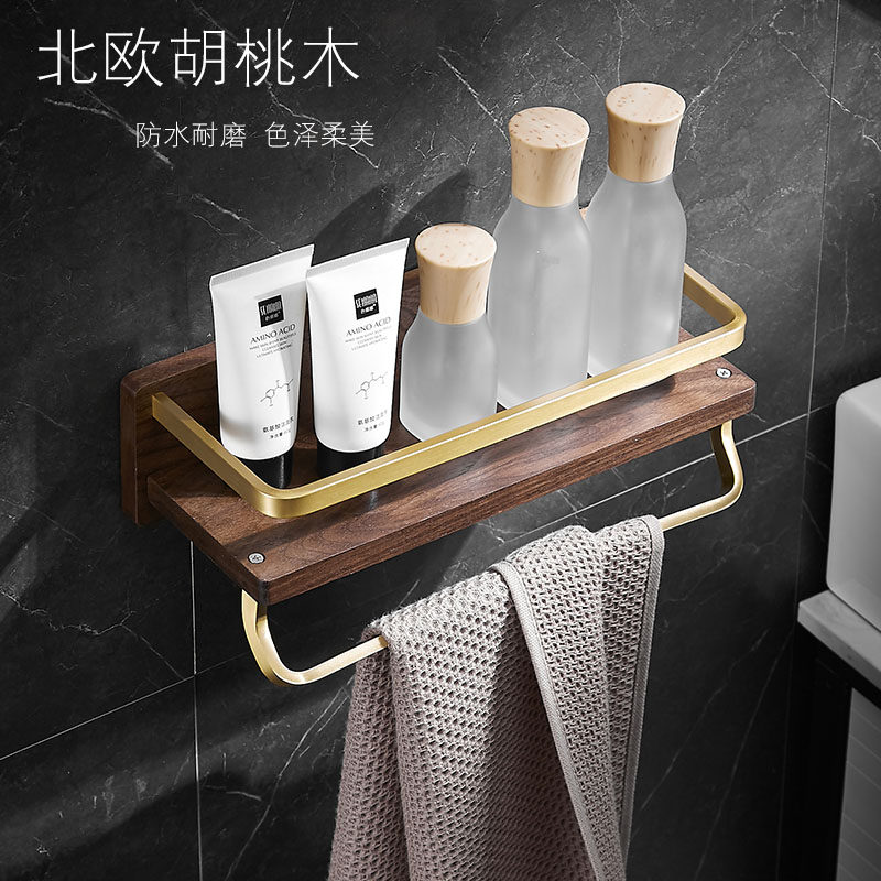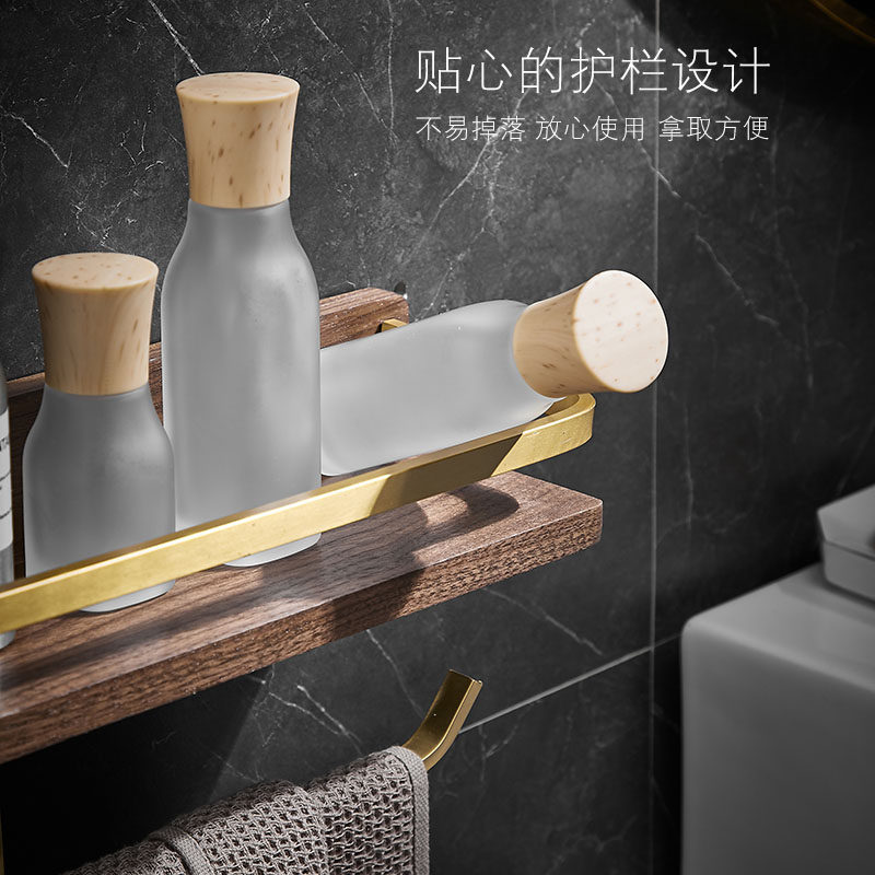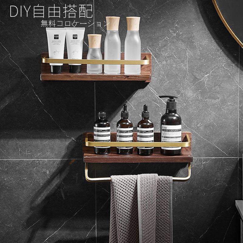Light luxury non-perforated Nordic solid wood bathroom shelf wall-mounted bathroom storage cosmetics towel word partition