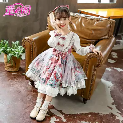 Children chiffon splicing mesh gauze princess dress cartoon printing 2021 autumn girls foreign pie rolita dress tide