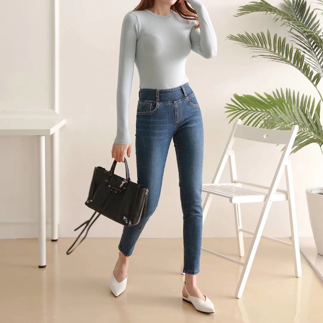 Sashimi small foot closeted jeans invisible tightness tightness waist elasticity has a large size Korean spring new