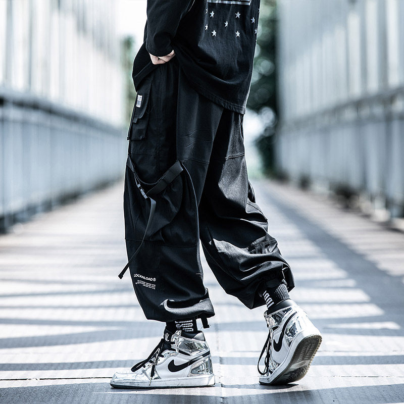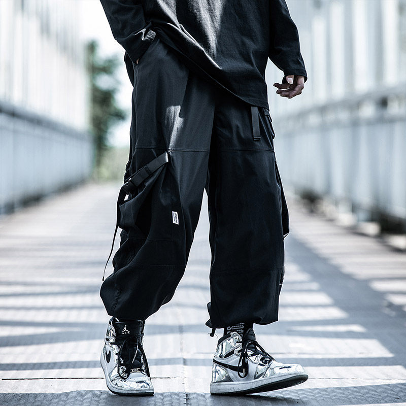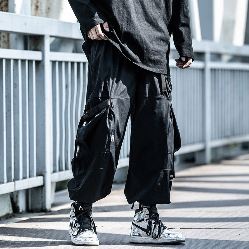 Small Buns Tide Autumn New Functions Wind Long Pants Men Loose Belt bunches Pants Tide and Clothing Pants Tide-Taobao